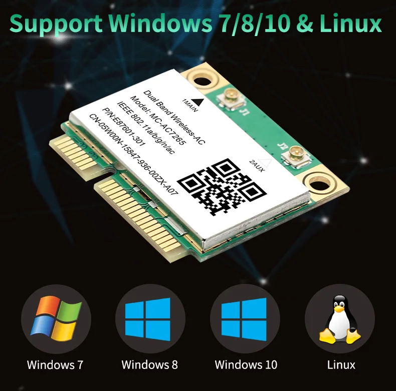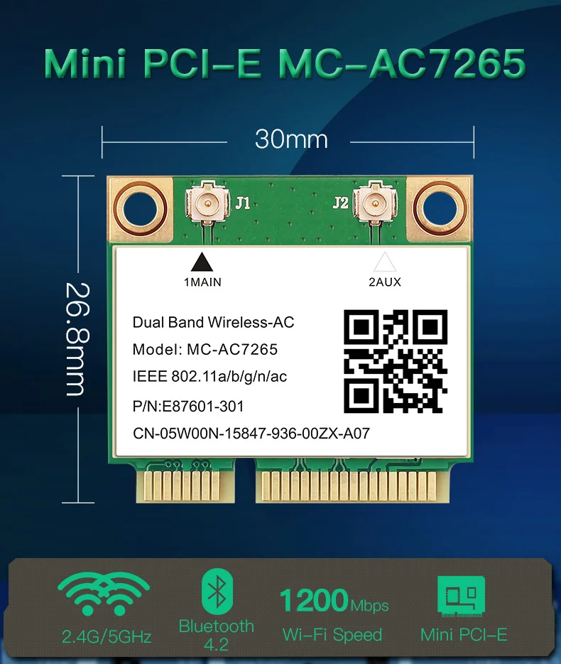 Medio Mini PCI-E Wifi tarjeta MC-AC7265