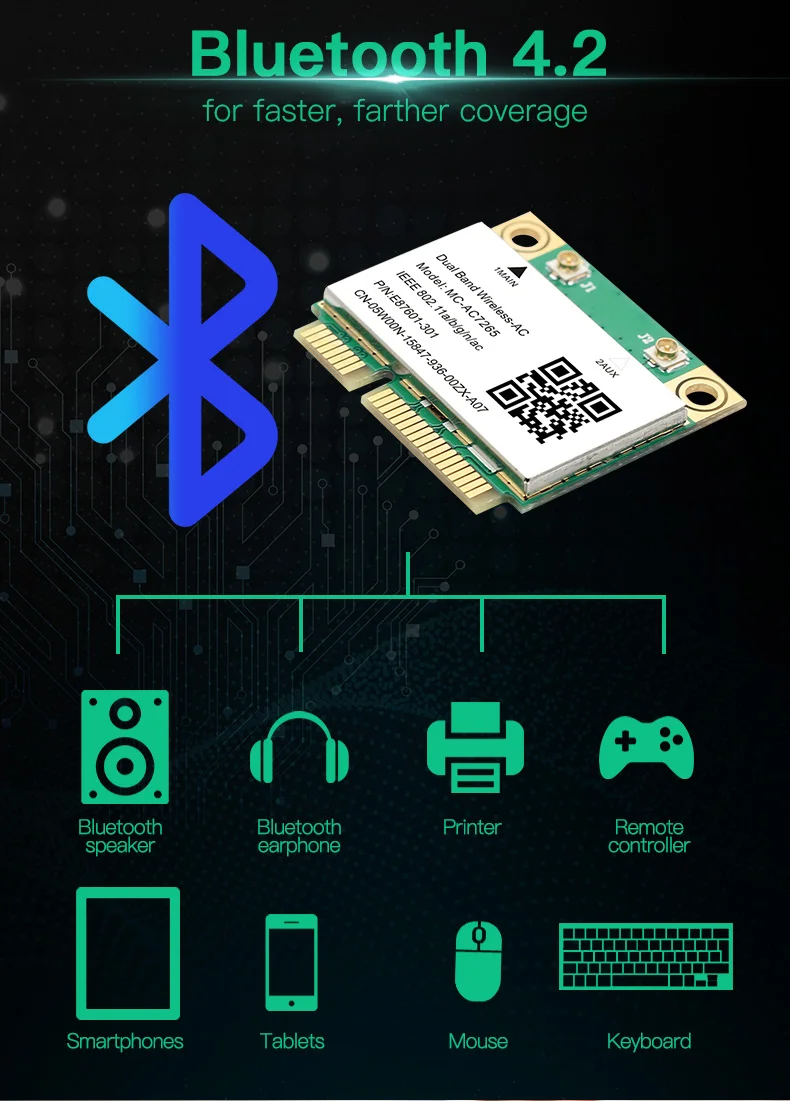 Comprar MC-AC7265 inalámbrica de 1200Mbps, PCI-E tarjeta Wifi, Bluetooth 4,2, 802.11ac, banda Dual, 2,4G, 5Ghz, adaptador para portátil de 7260HMW