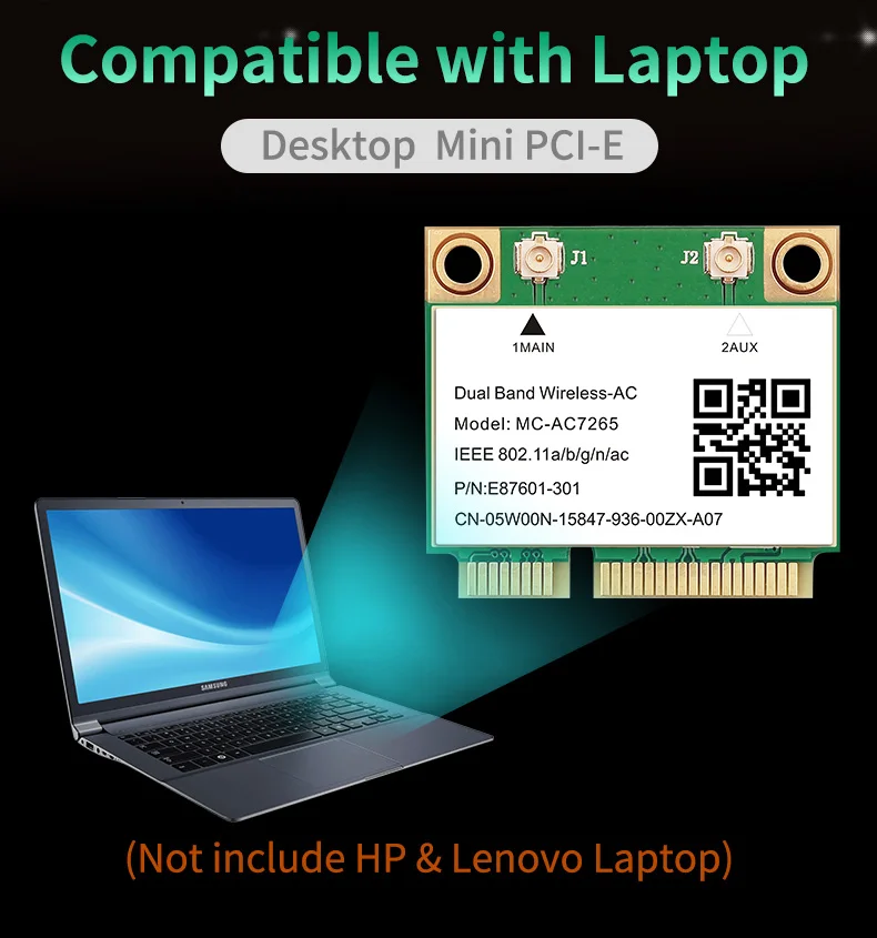 Compatible con casi todos los ordenadores portátiles con interfaz Mini PCI-E, como Asus, Acer, Dell, Samsung, Toshiba, Sony, etc.