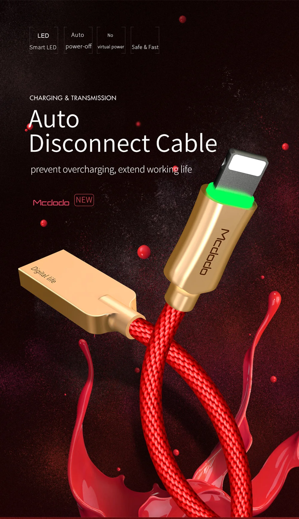 Comprar Mcdodo-Cable de carga rápida USB para teléfono, Cable de desconexión automática, 2,4 a, para iPhone 13, 12, 11 Pro Max, XS, XR, 8, 7, iPad, iOS
