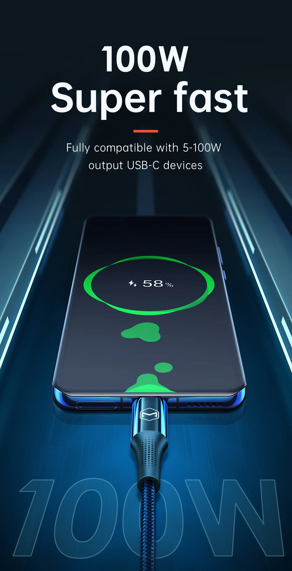 Comprar Mcdodo-Cable de carga superrápida USB C a tipo C, 5A, para Huawei, Xiaomi, Samsung, QC 4,0, PD, 100W, para iPad Pro, MacBook, tableta