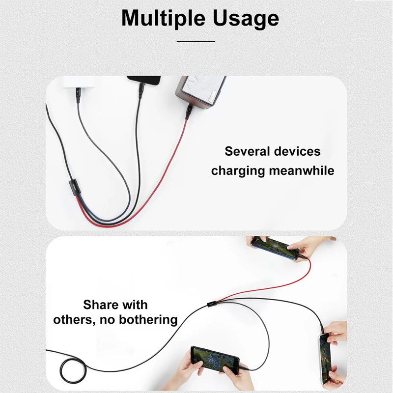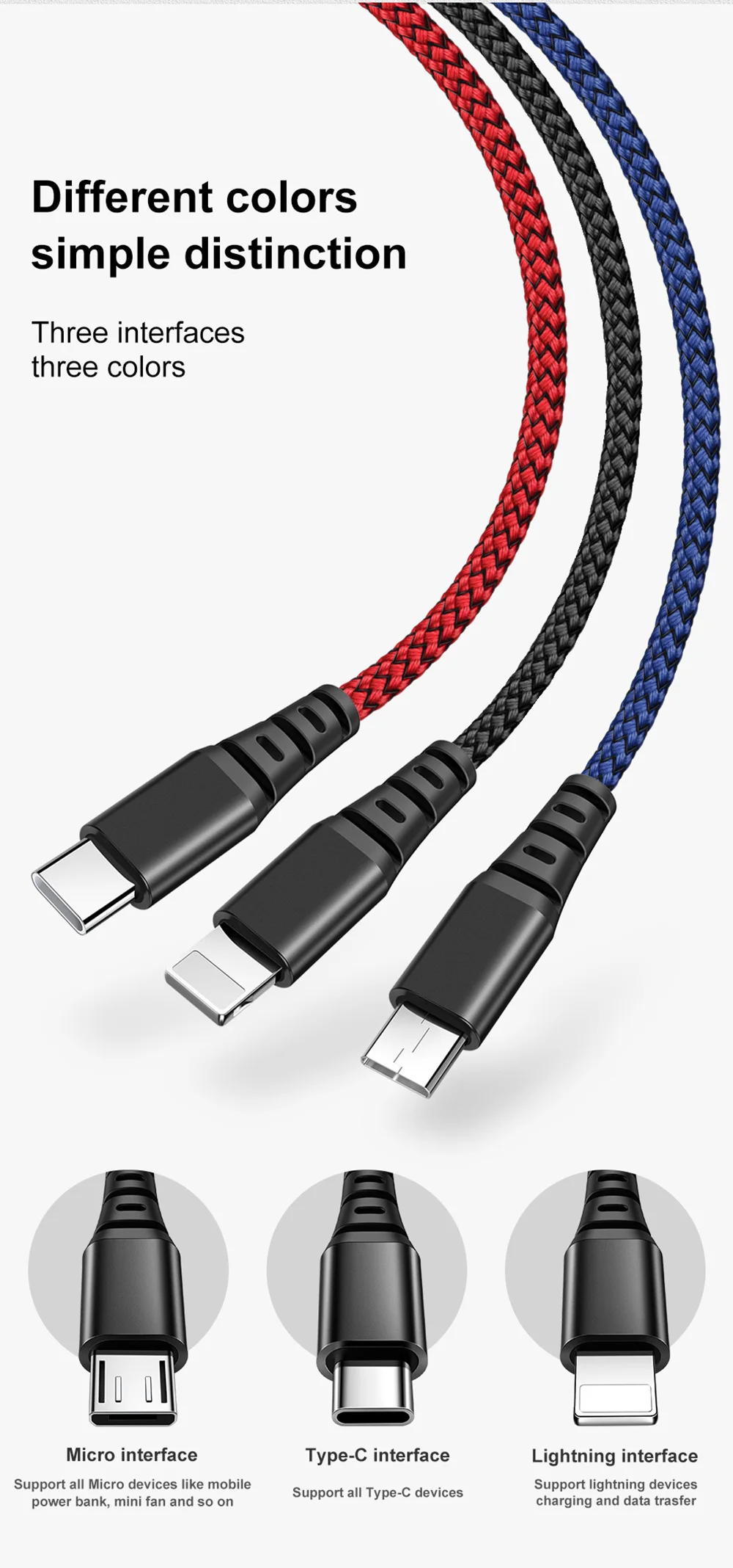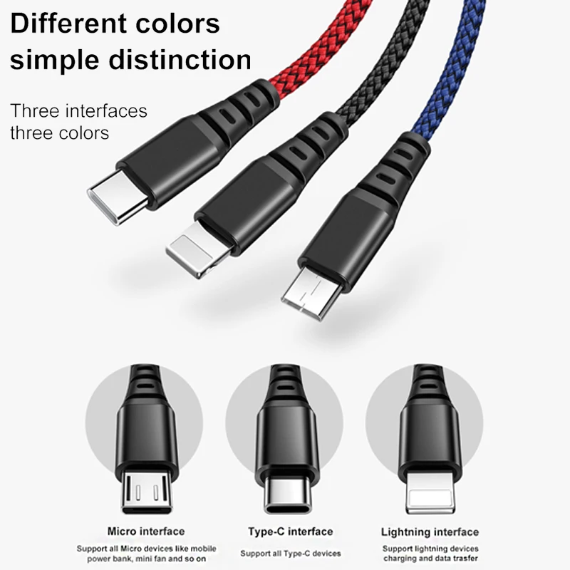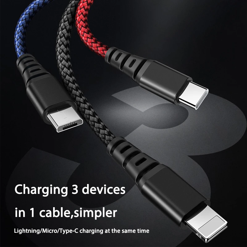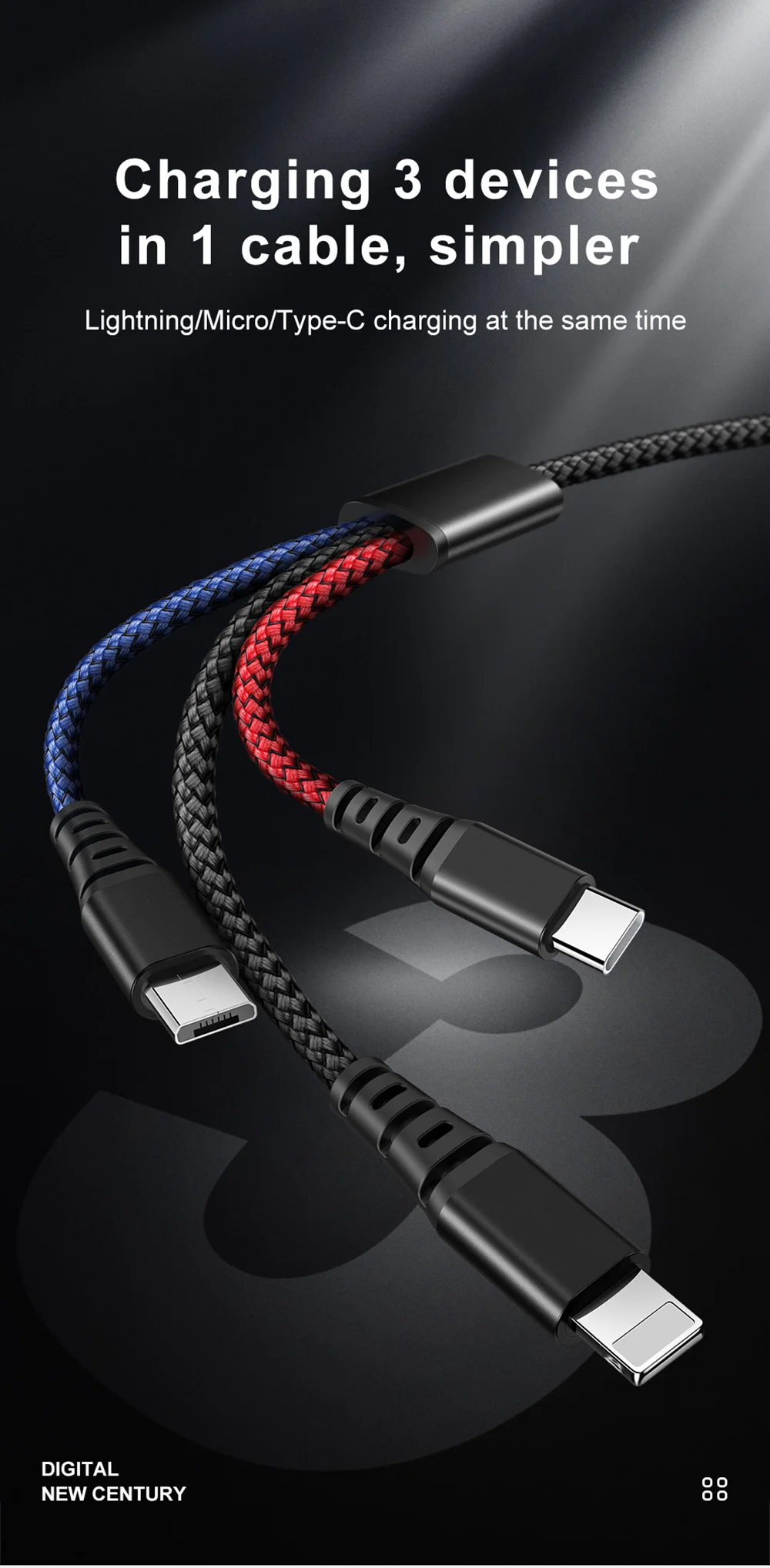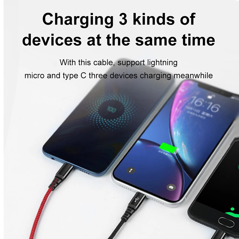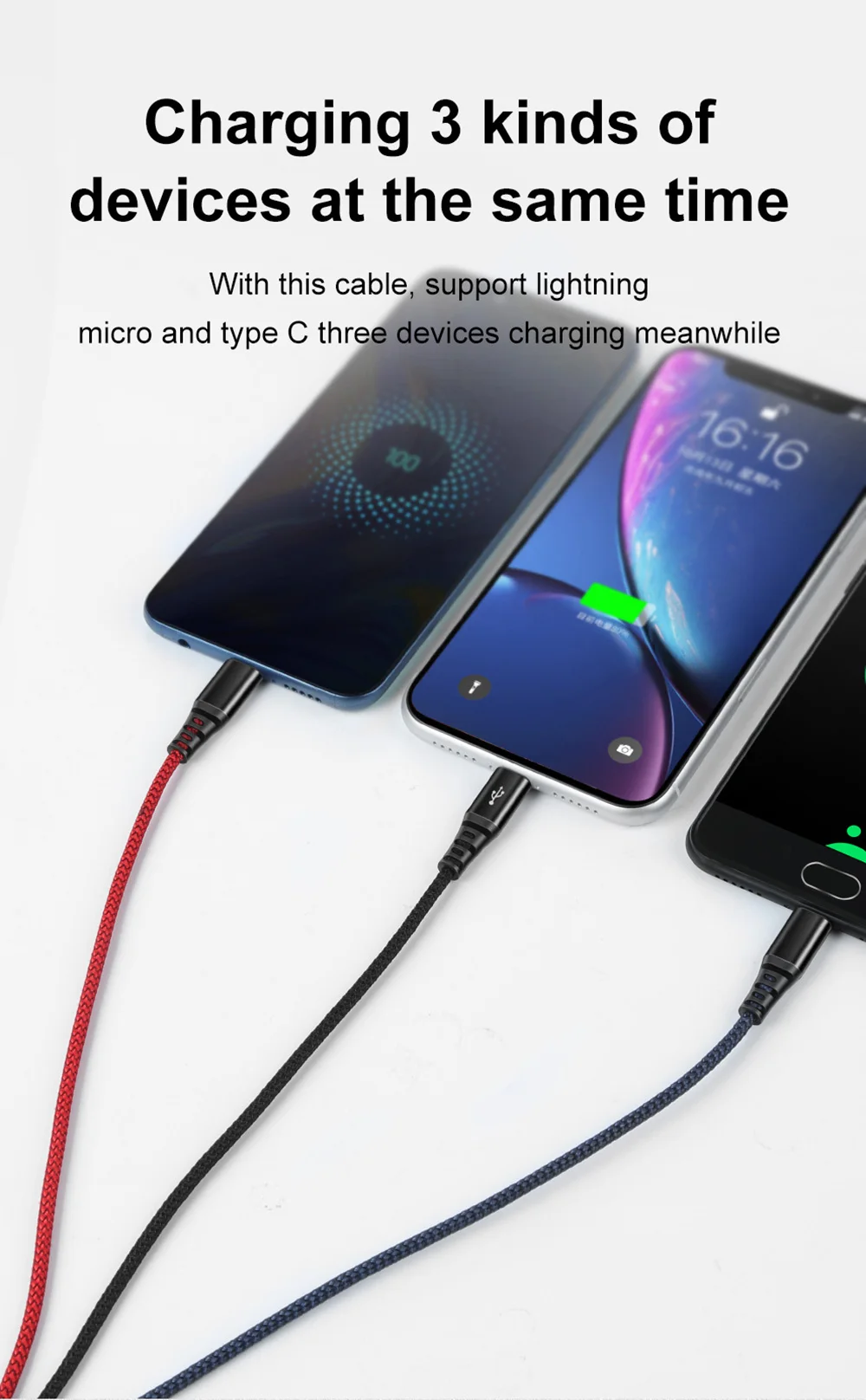 Carga de 3 dispositivos en 1 Cable, iluminación más simple/Micro/carga de tipo C al mismo tiempo