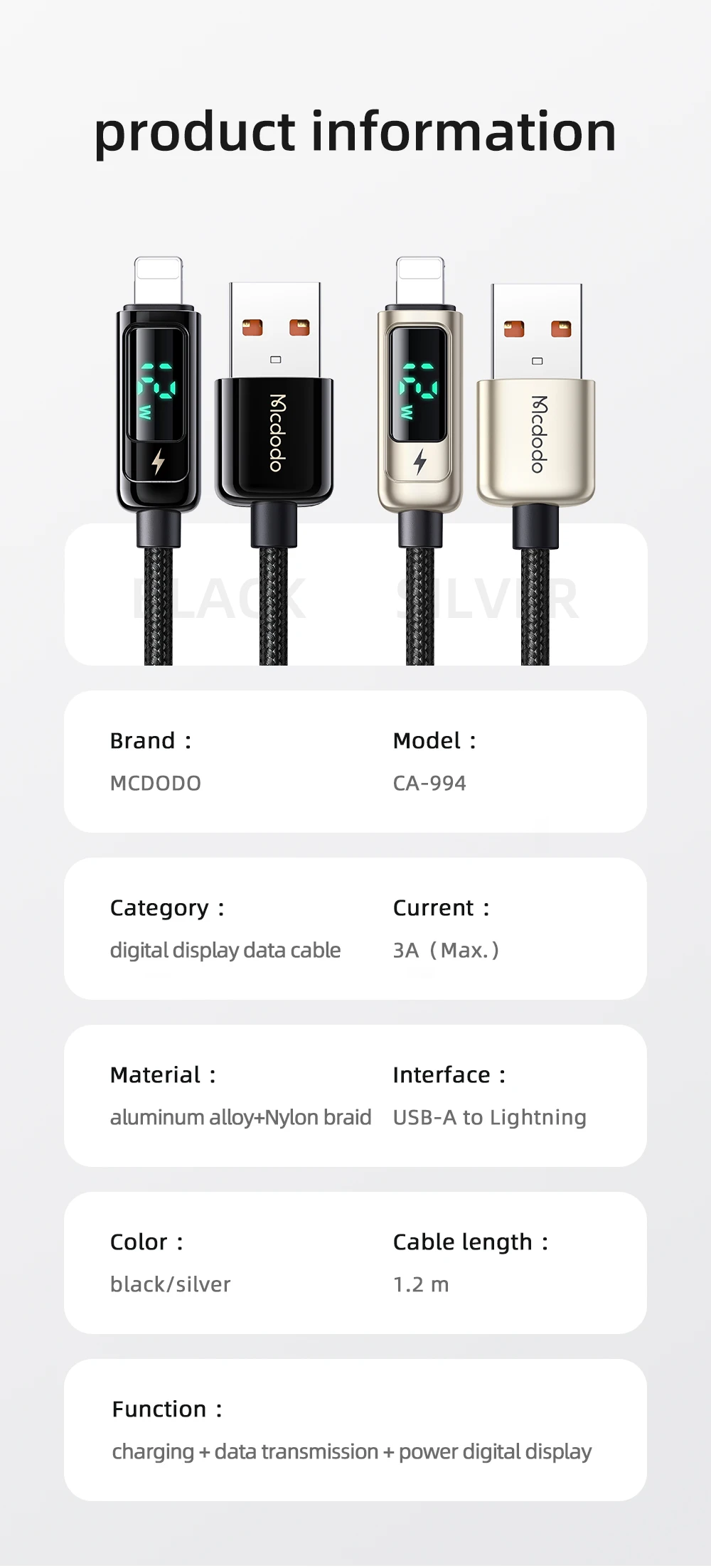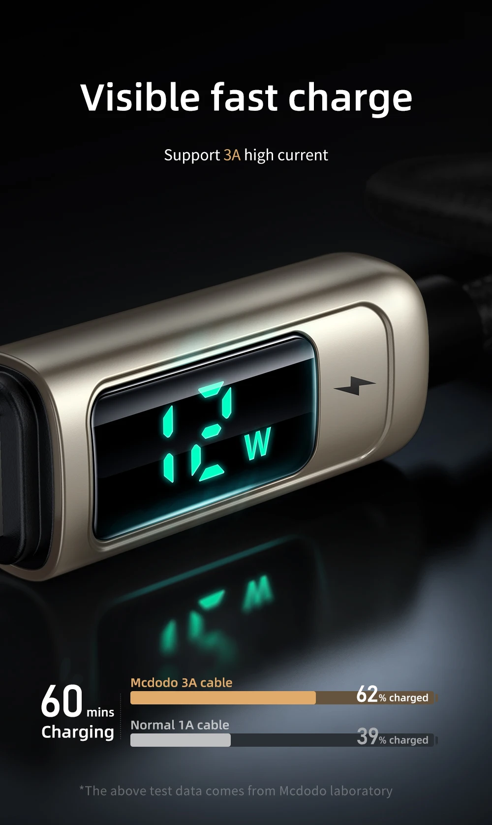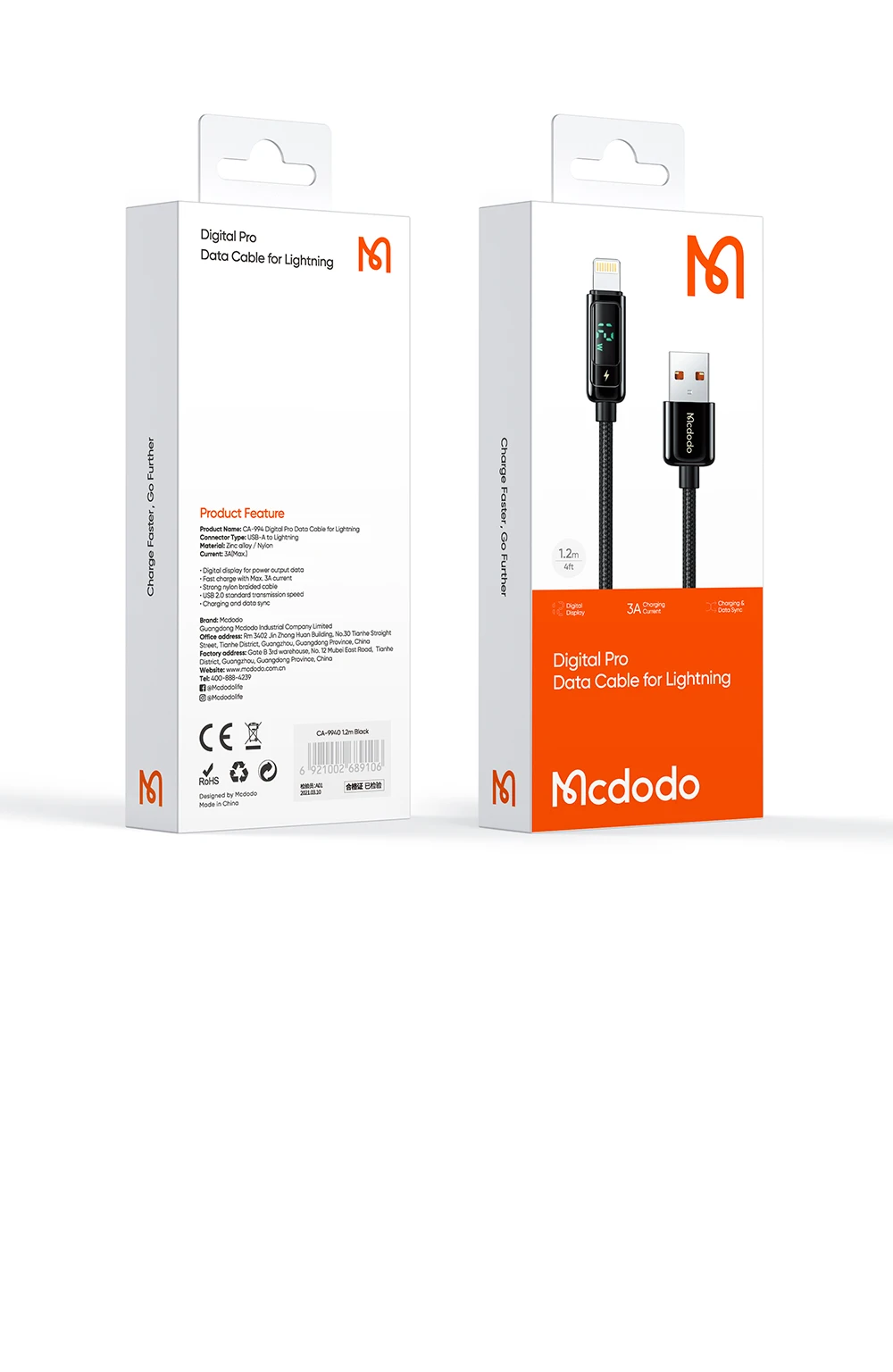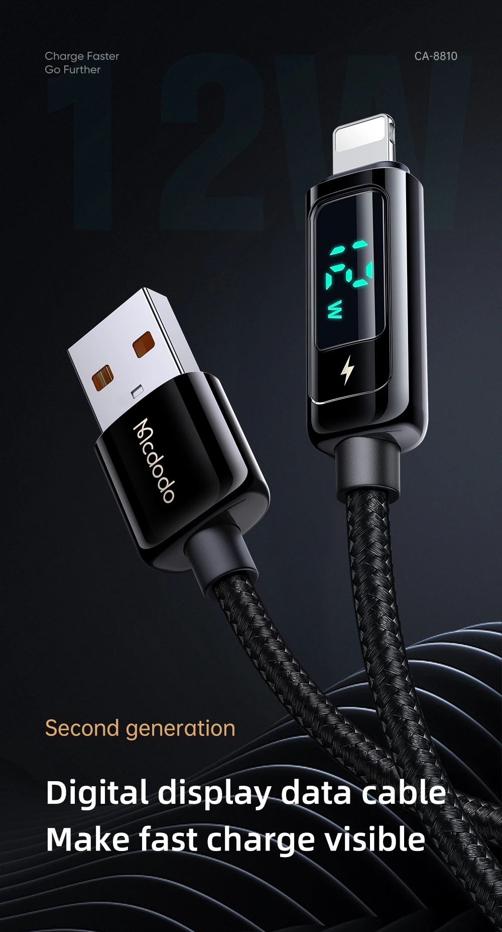 Comprar Mcdodo-Cable USB de carga rápida para iPhone, cargador de pantalla Digital de 12W, 3A, para iPhone 14, 13, 12, 11 Pro Max, 8, 7, iPad, iOS 16