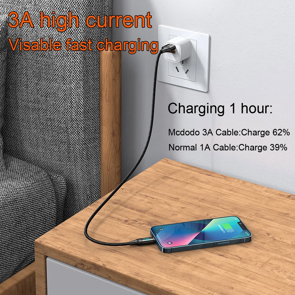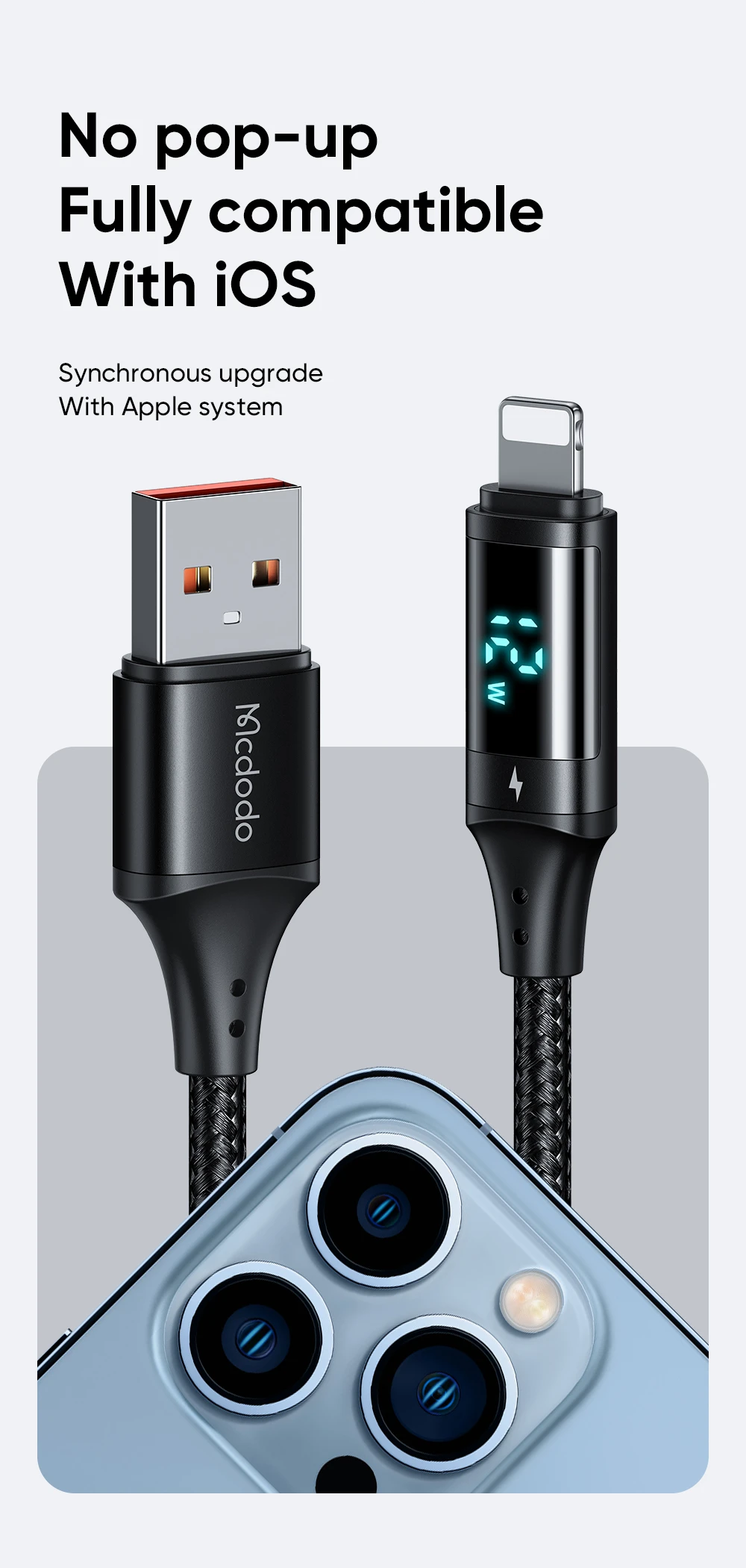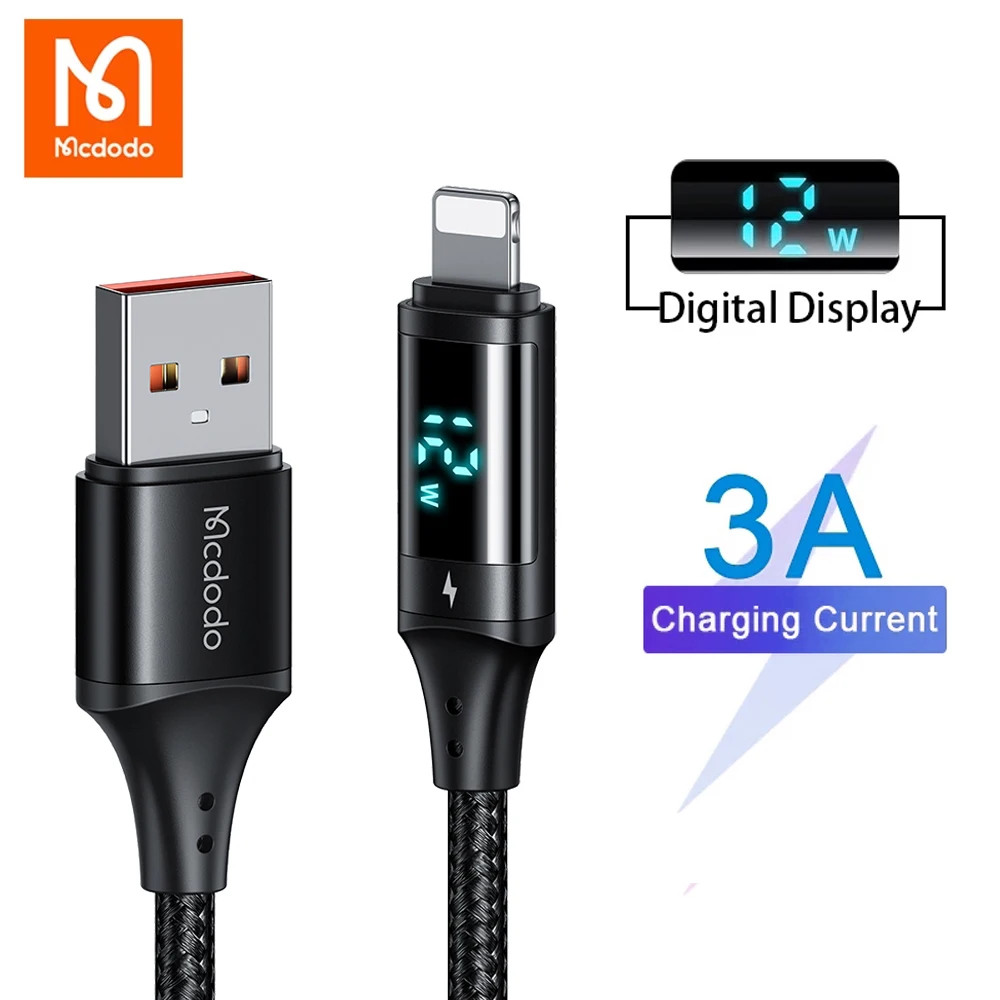 Mcdodo-Cable USB de carga rápida para teléfono móvil, dispositivo de 12W, 3A, para iPhone 14, 13, 12, 11 Pro Max, XR, X, 8, 7, 6, iPad, pantalla Digital LED