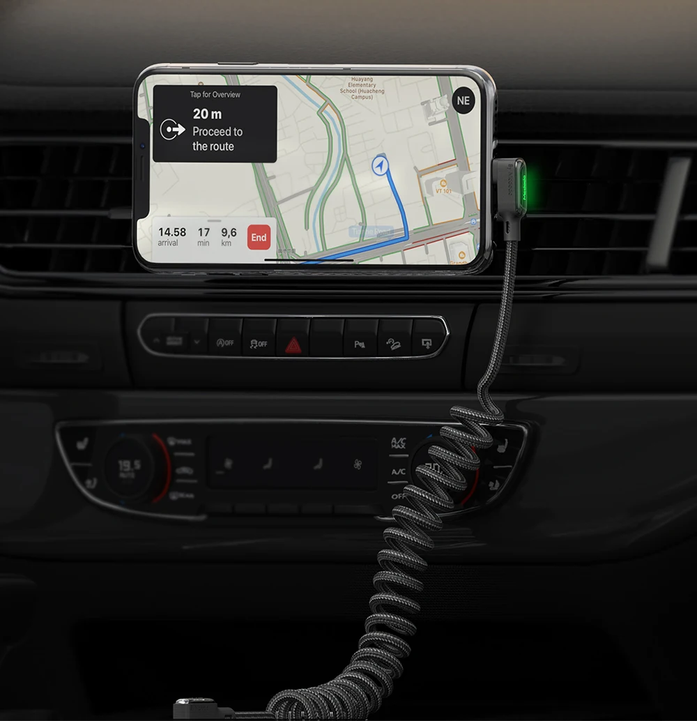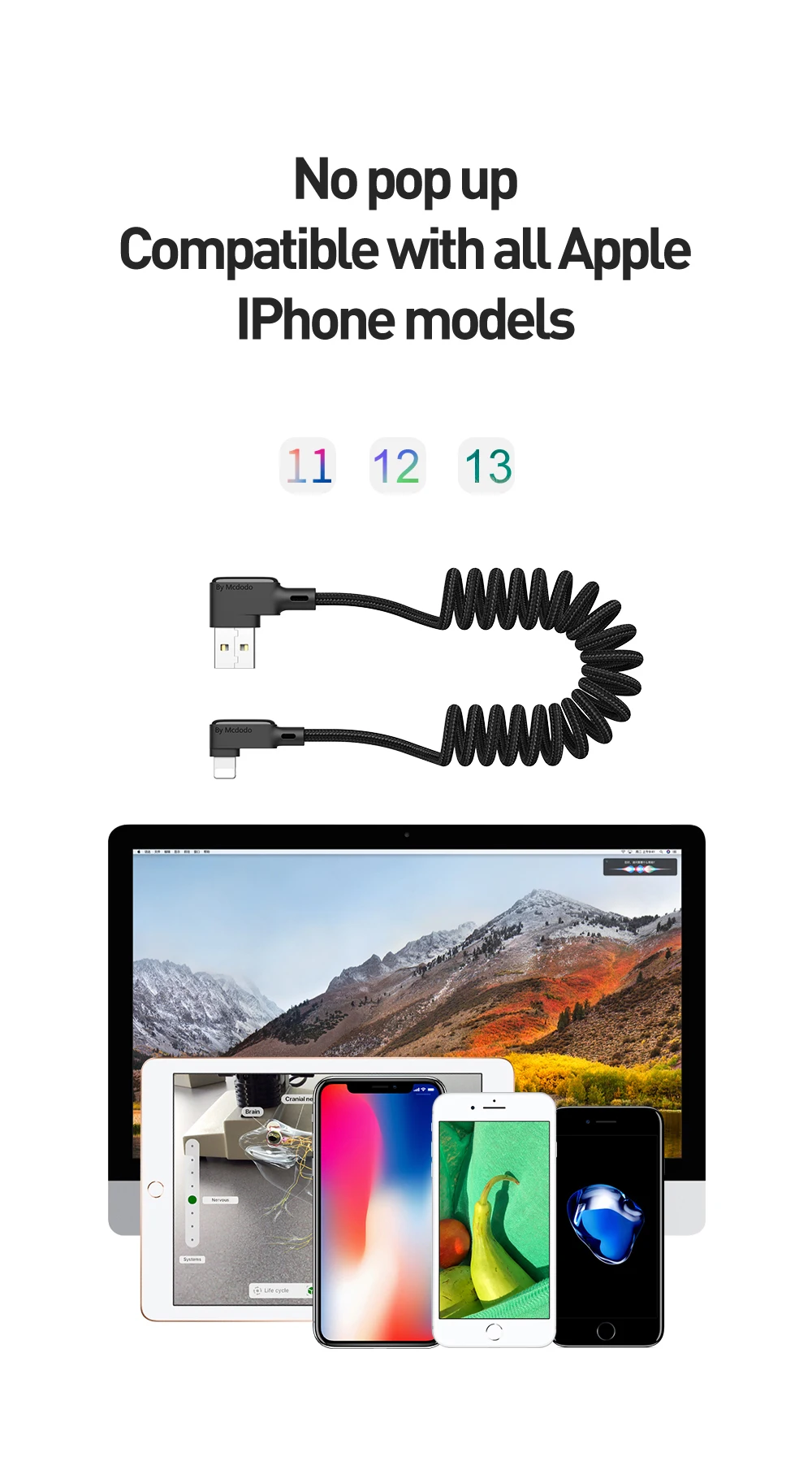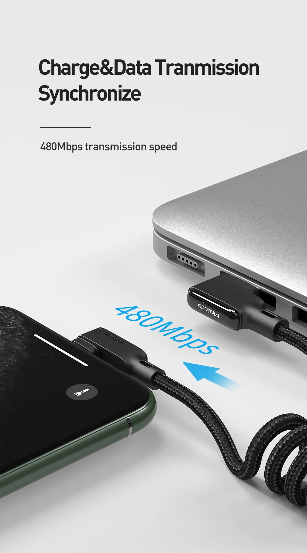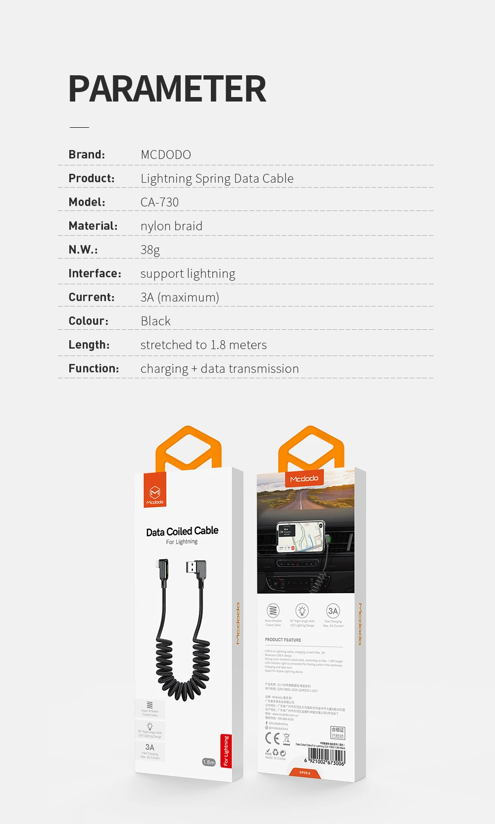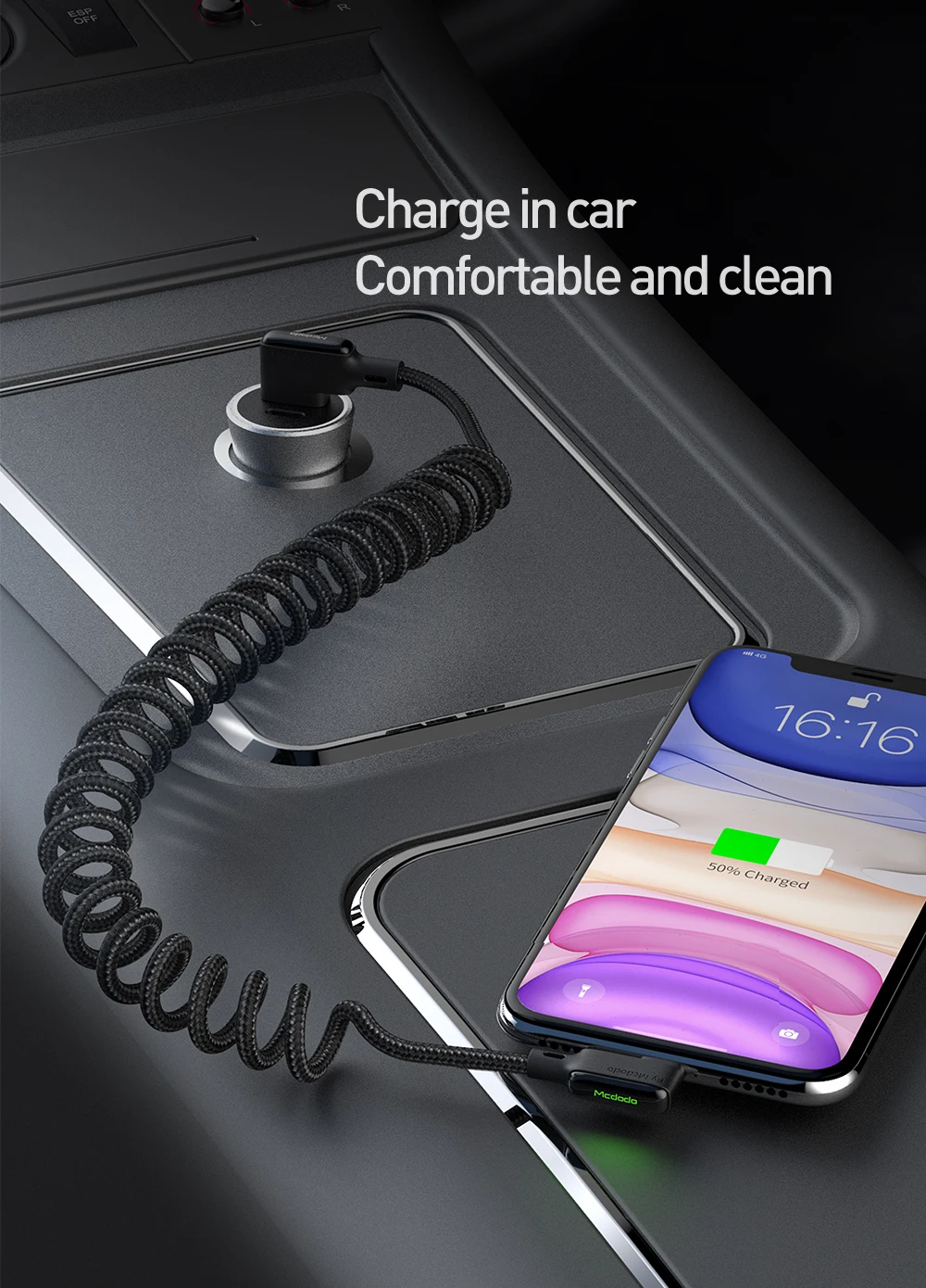 Comprar Mcdodo-Cable USB de resorte 3A para IPhone, Cable de datos de cargador rápido, Cable de almacenamiento de estilo de coche para IPhone 13 12 11 Pro Max X XR, Cable LED