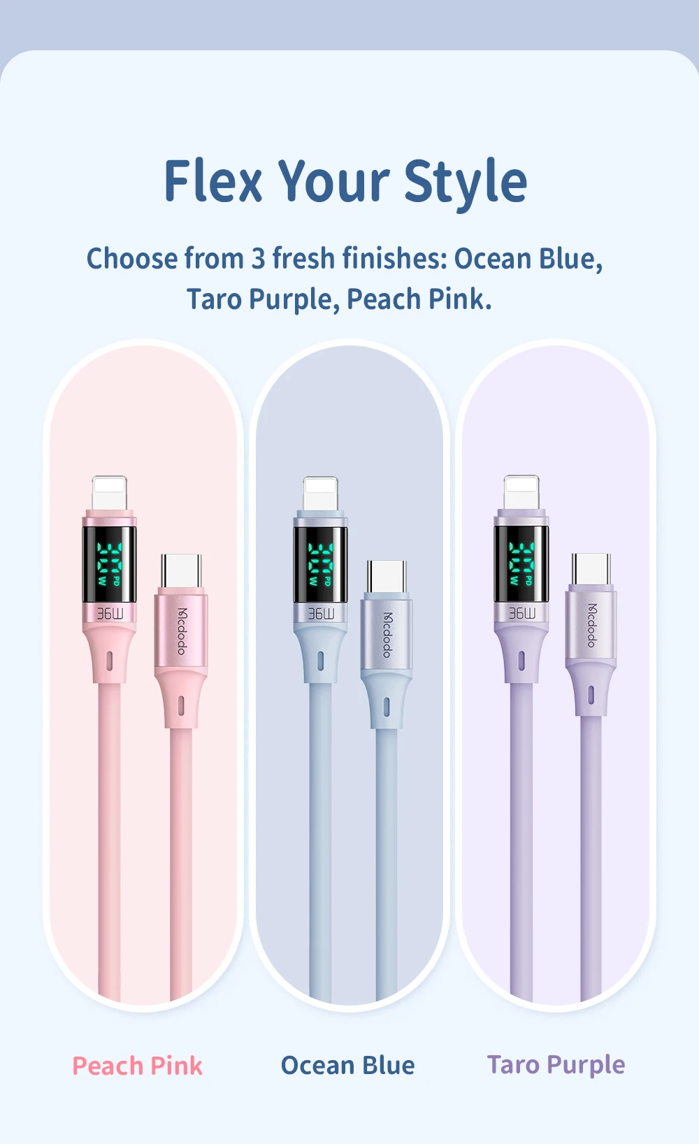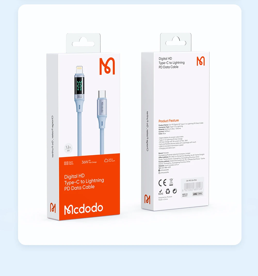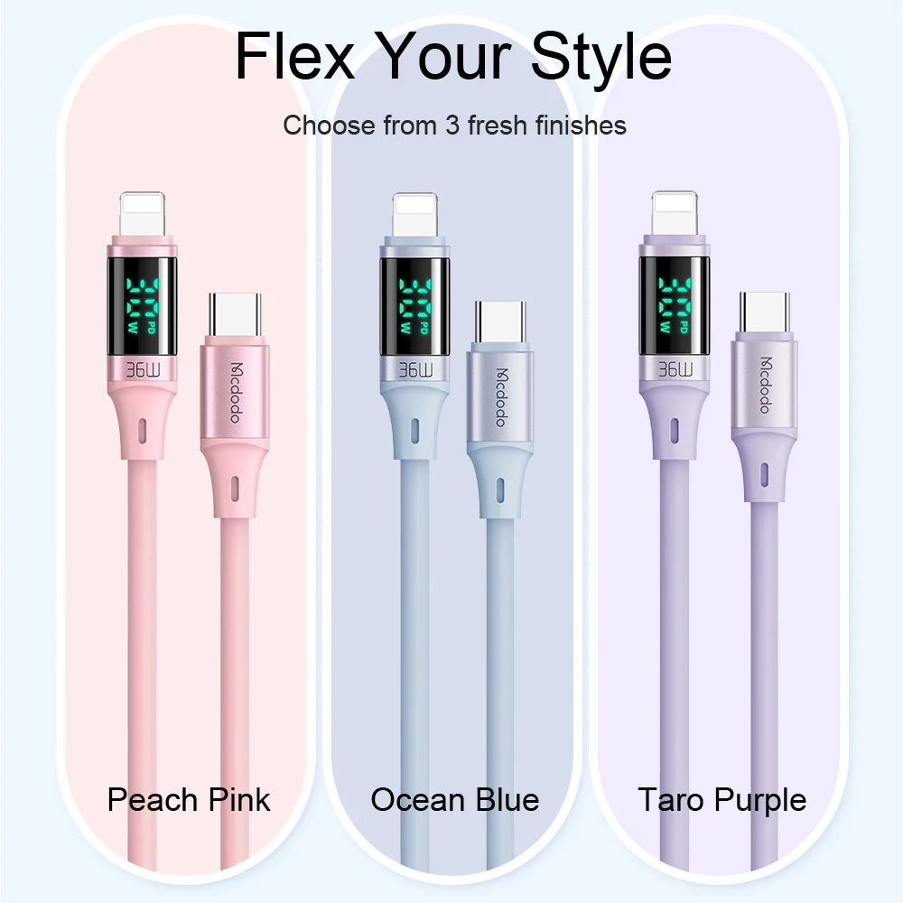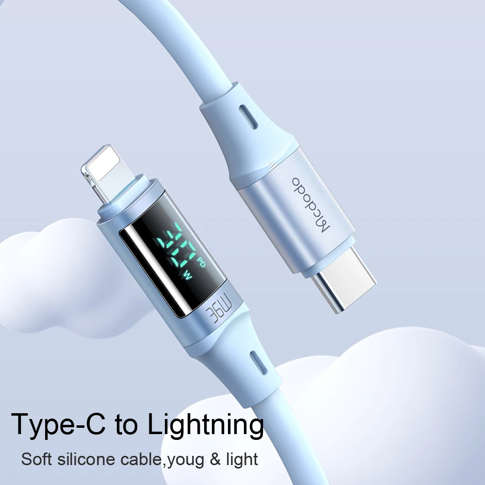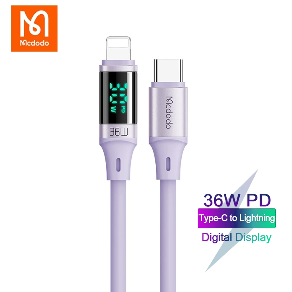Comprar Mcdodo-Cable USB tipo C A lightning de carga rápida para iPhone 14, 13, 12, 11 Pro, Max, XR, iPad, pantalla Digital, 36W