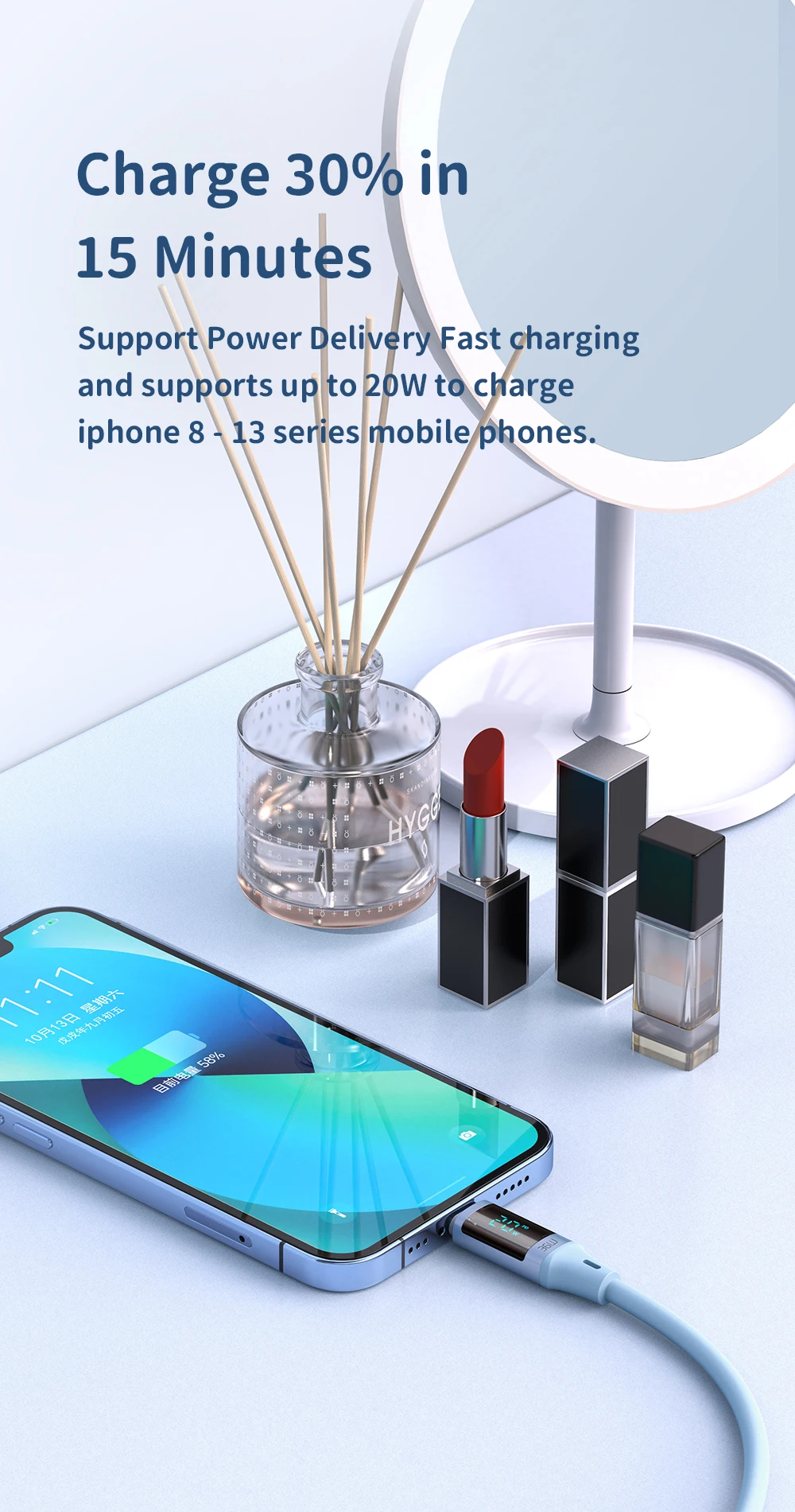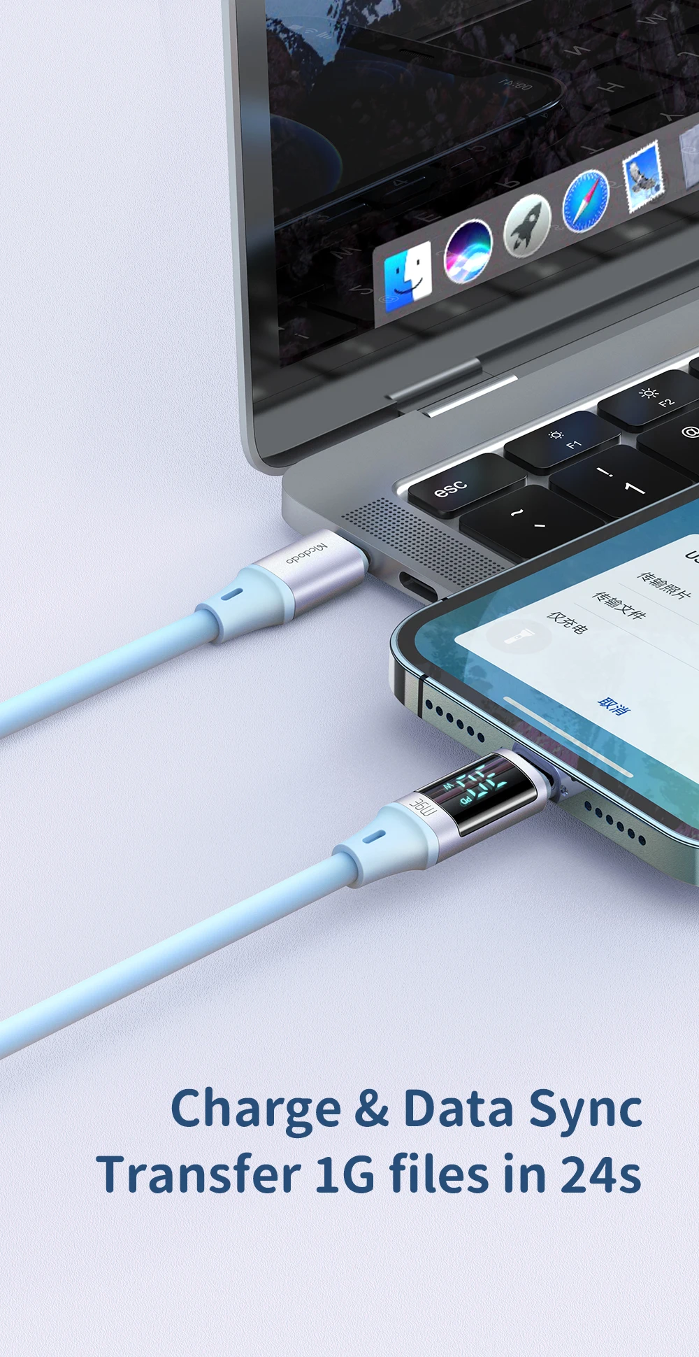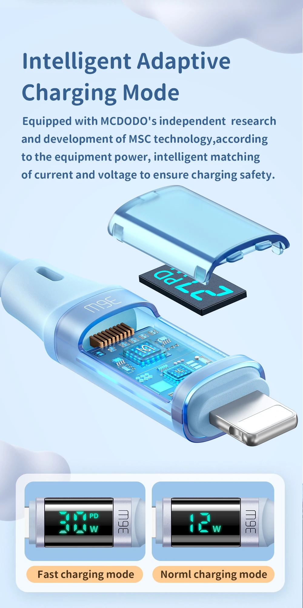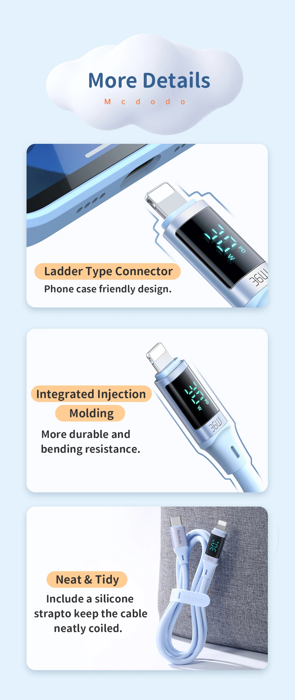 Comprar Mcdodo-Cable USB tipo C A lightning de carga rápida para iPhone 14, 13, 12, 11 Pro, Max, XR, iPad, pantalla Digital, 36W