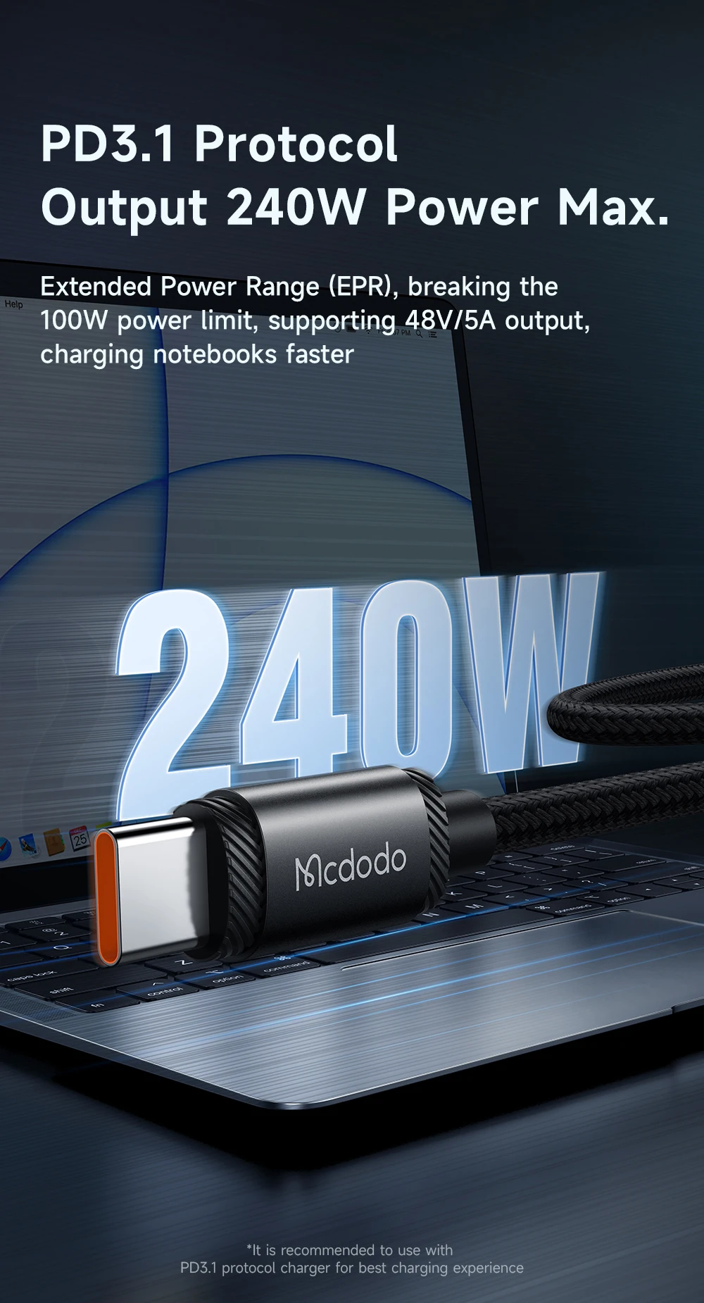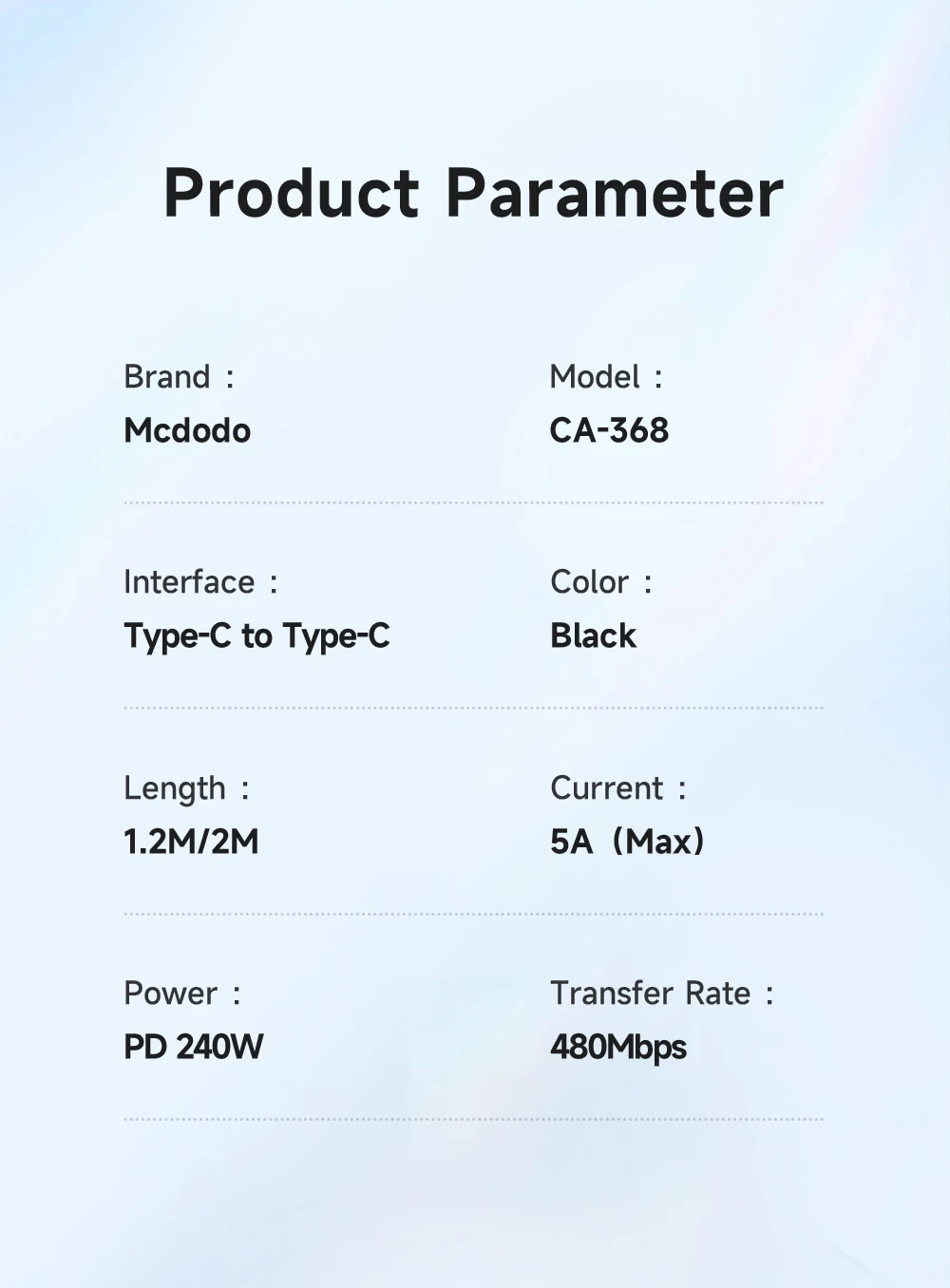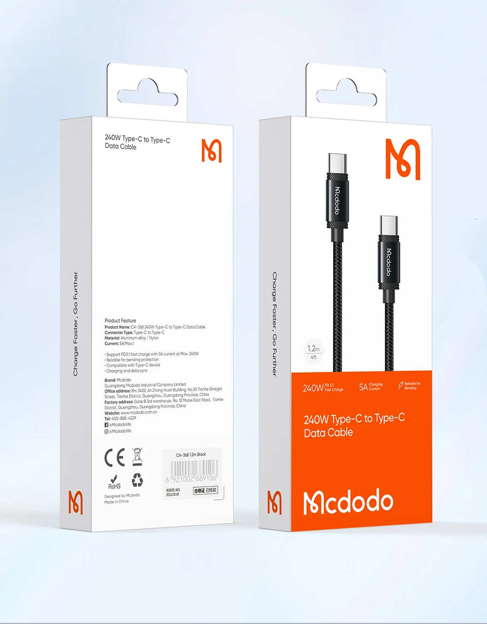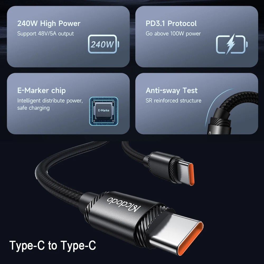 Nombre del artículo: Cable DE DATOS PD de 240W tipo C a tipo C de nailon