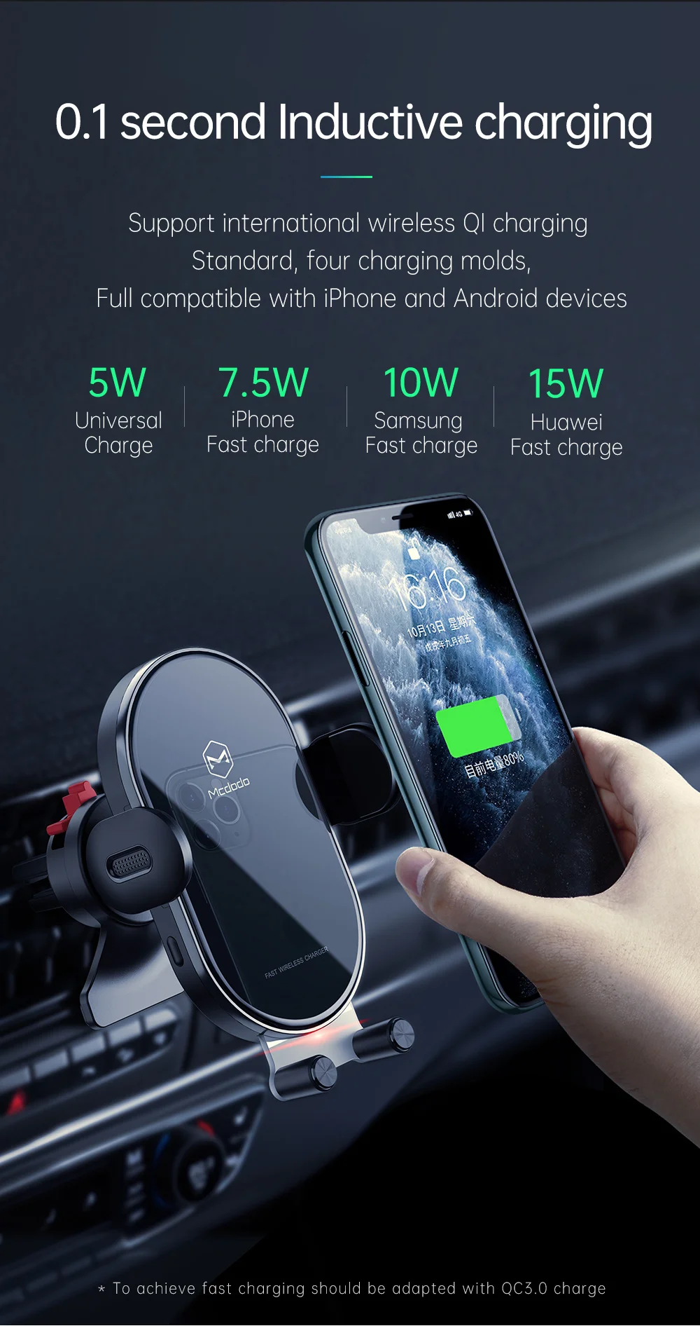 Comprar Mcdodo-Soporte de teléfono Qi rápido para coche, cargador inalámbrico de 15W, Clip de ventilación de aire de gravedad automática, para iPhone 11, X, Huawei, xiaomi