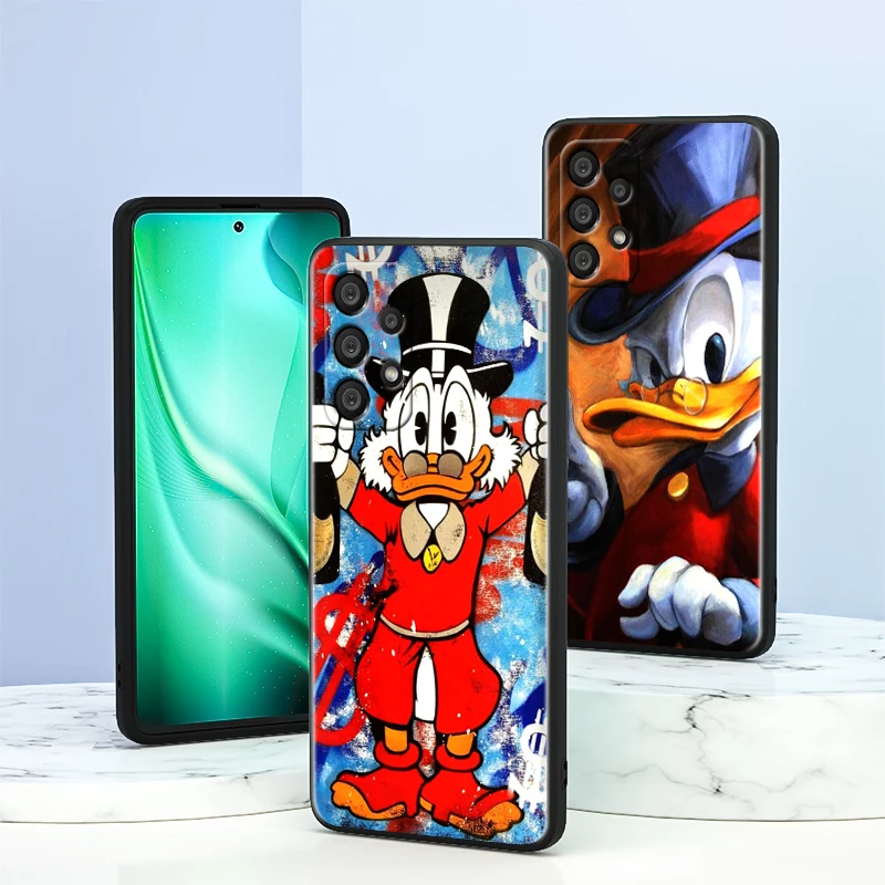 McDuck Scrooge Cool para Samsung A55, A35, A25, A15, A14, A73, A53, A13, A05S, A03S, A02S, A71, A52, A32, funda suave negra para teléfono
