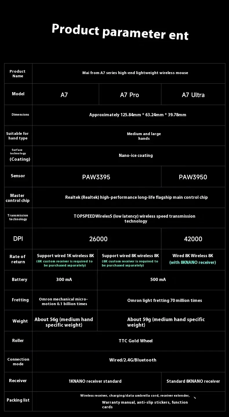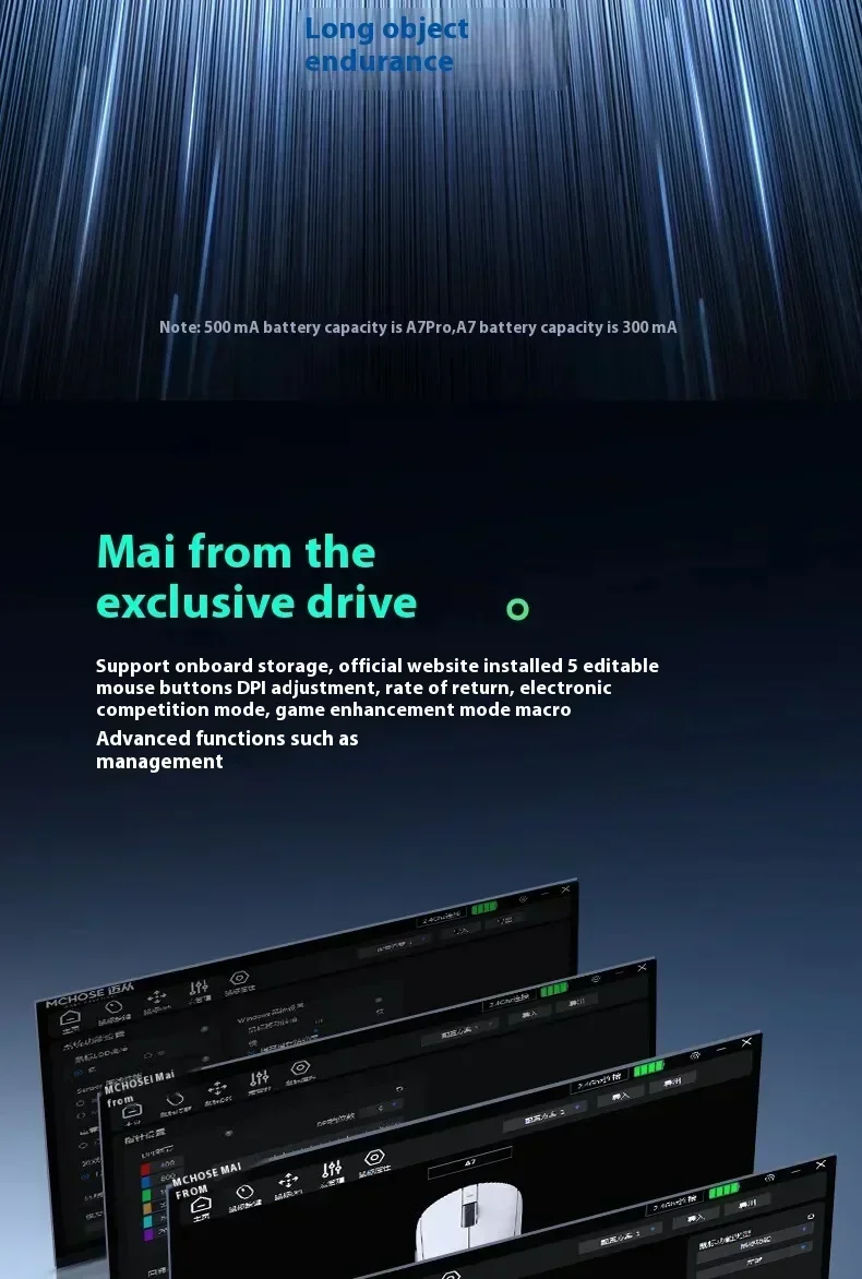 MCHOSE A7 Pro ratón Ultra inalámbrico multimodo para juegos y deportes electrónicos PAW3950 ligero 42000 ppp 8K ergonómico de retardo bajo 500mAh