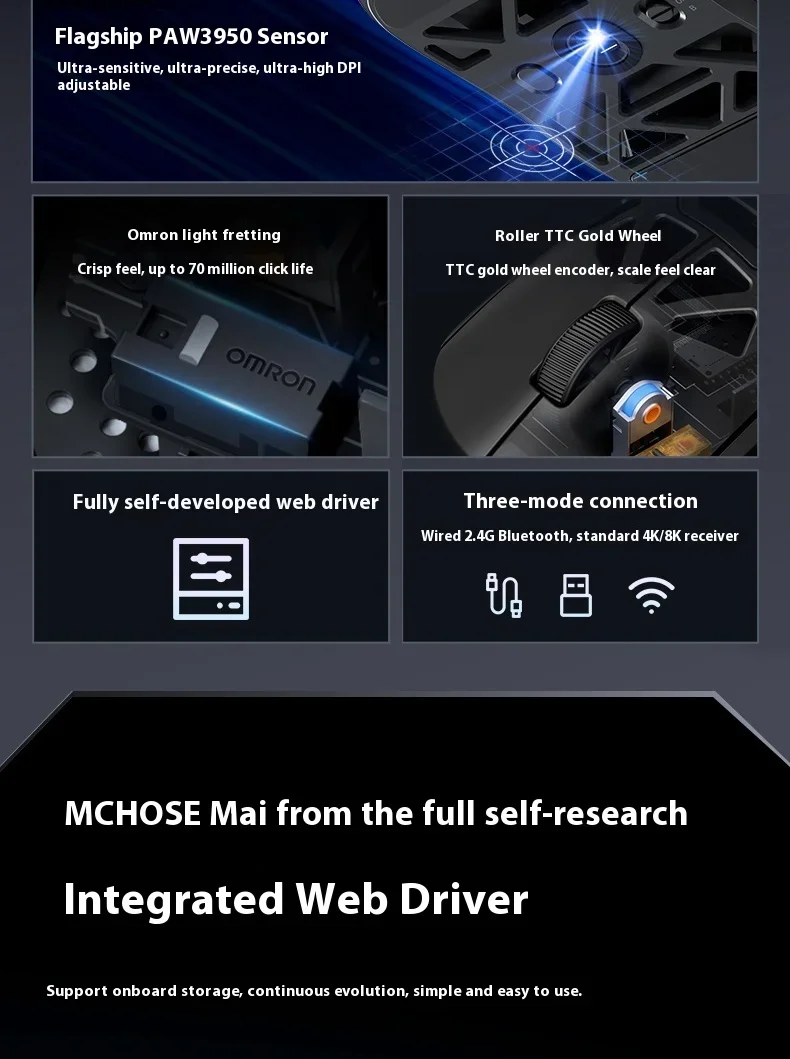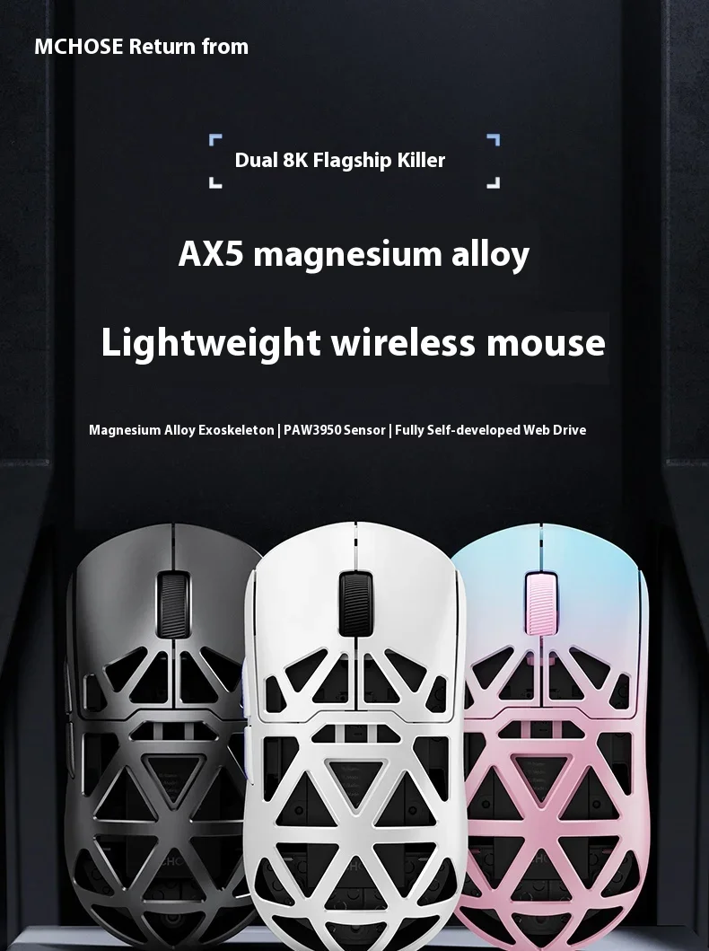 MCHOSE AX5 V2 Ratón inalámbrico personalizado Tri-modo aleación de magnesio Bluetooth 3 modos PAW3950 8K jugador de ratón electrónico para juegos deportivos