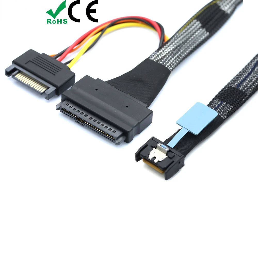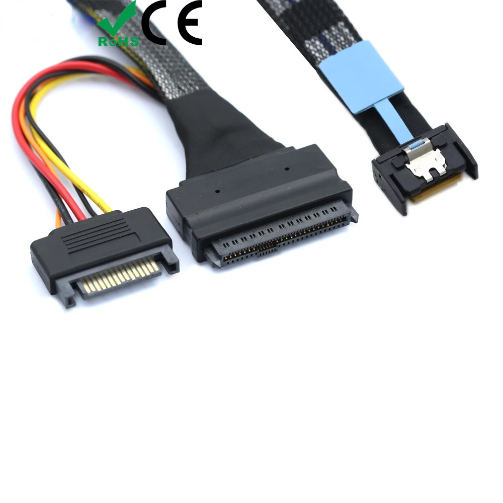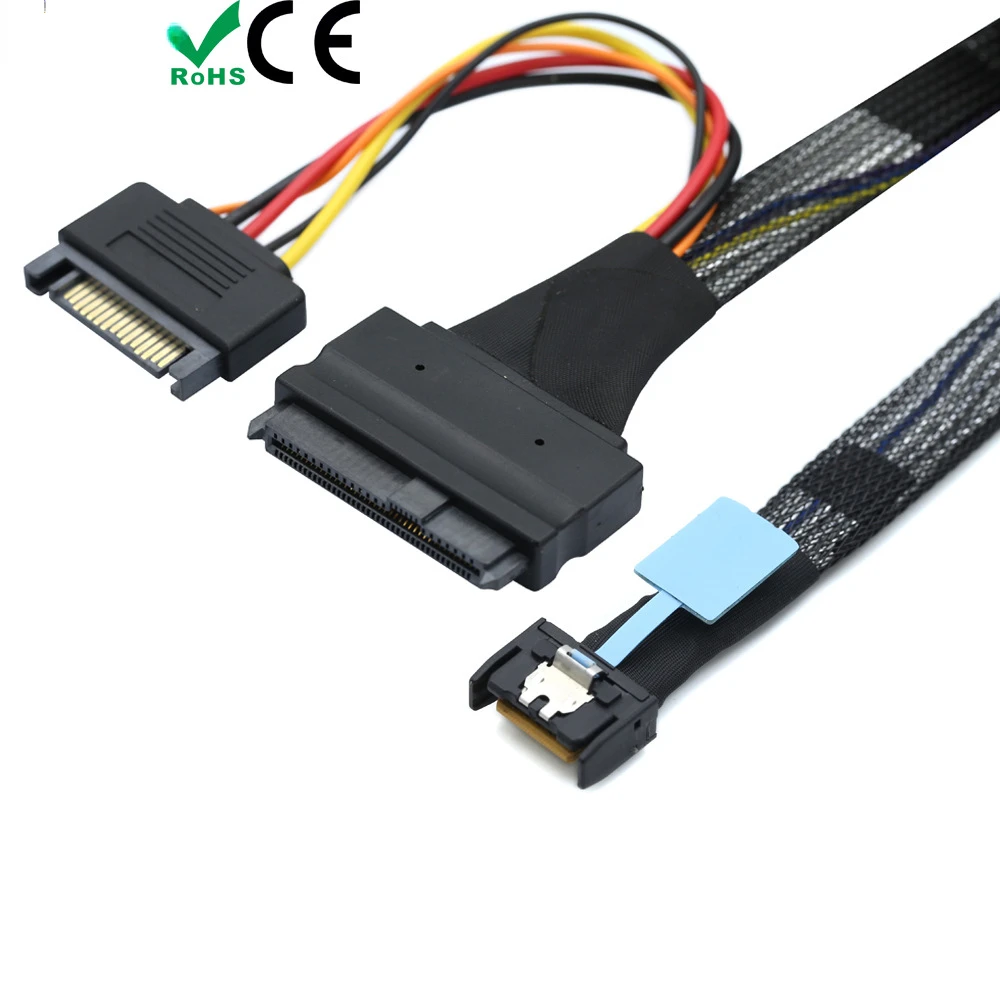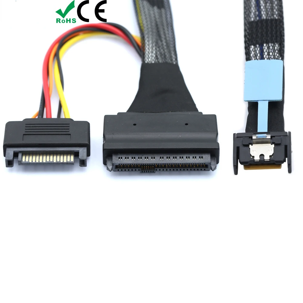 Comprar MCIO 4i Gen5 Slimline SAS SFF-8654 4X a U.2 NVMe Gen5 MCIO SAS SFF-8639 68Pin con SATA 15P macho Power PCIe Mini Cooledge IO