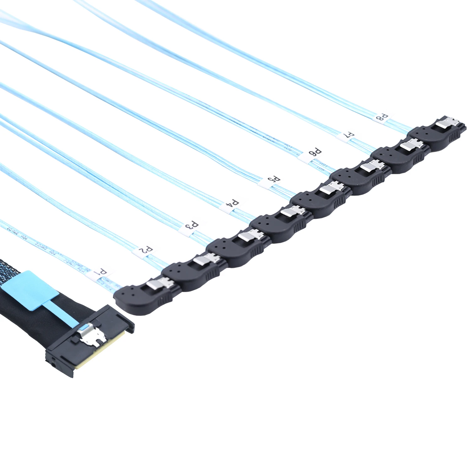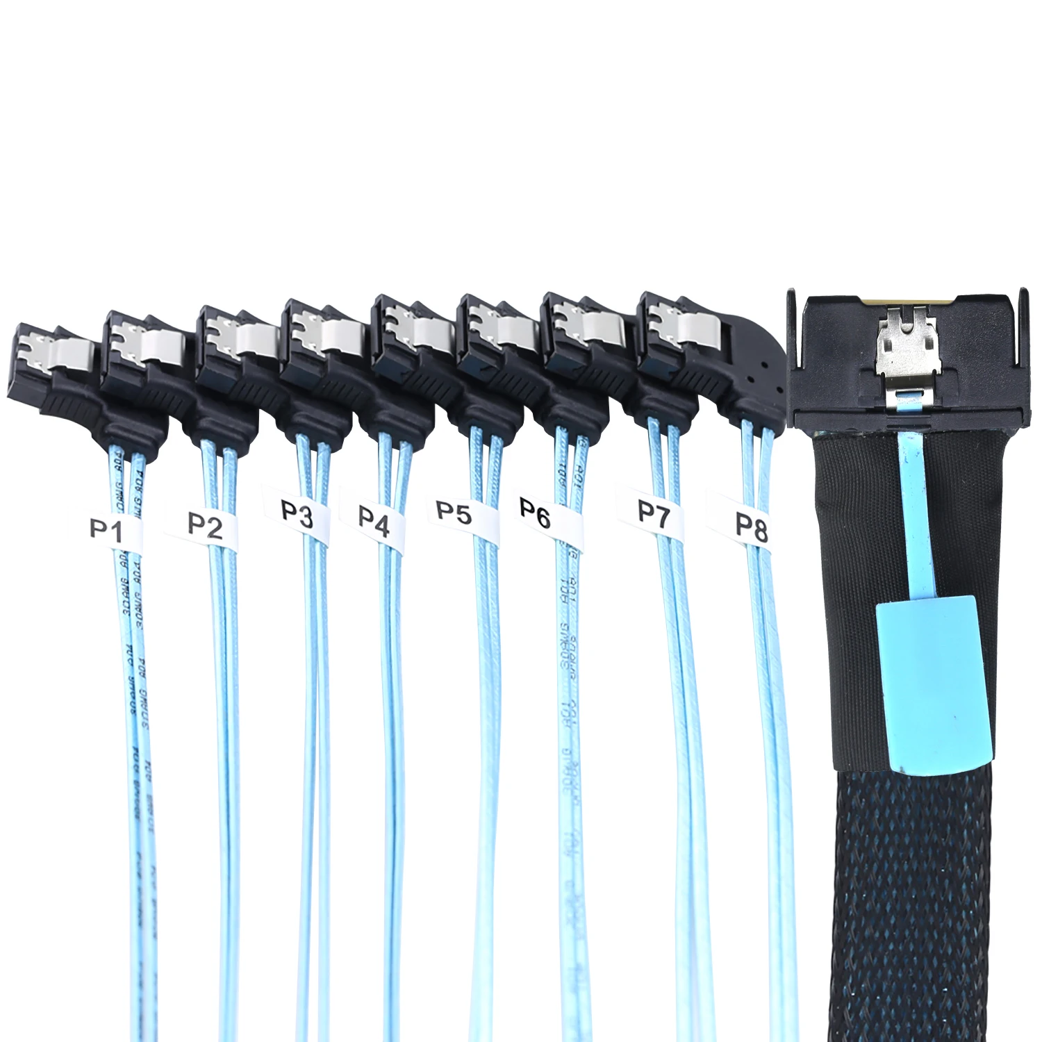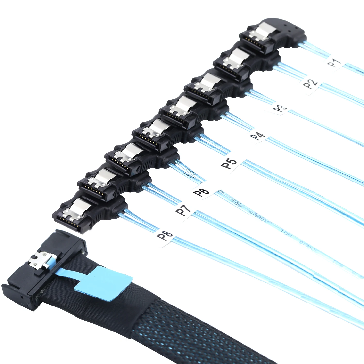 2. Convierte a 8 conectores SATA 7P hembra Left-Hand Bend, que pueden conectar fácilmente múltiples discos duros SATA.