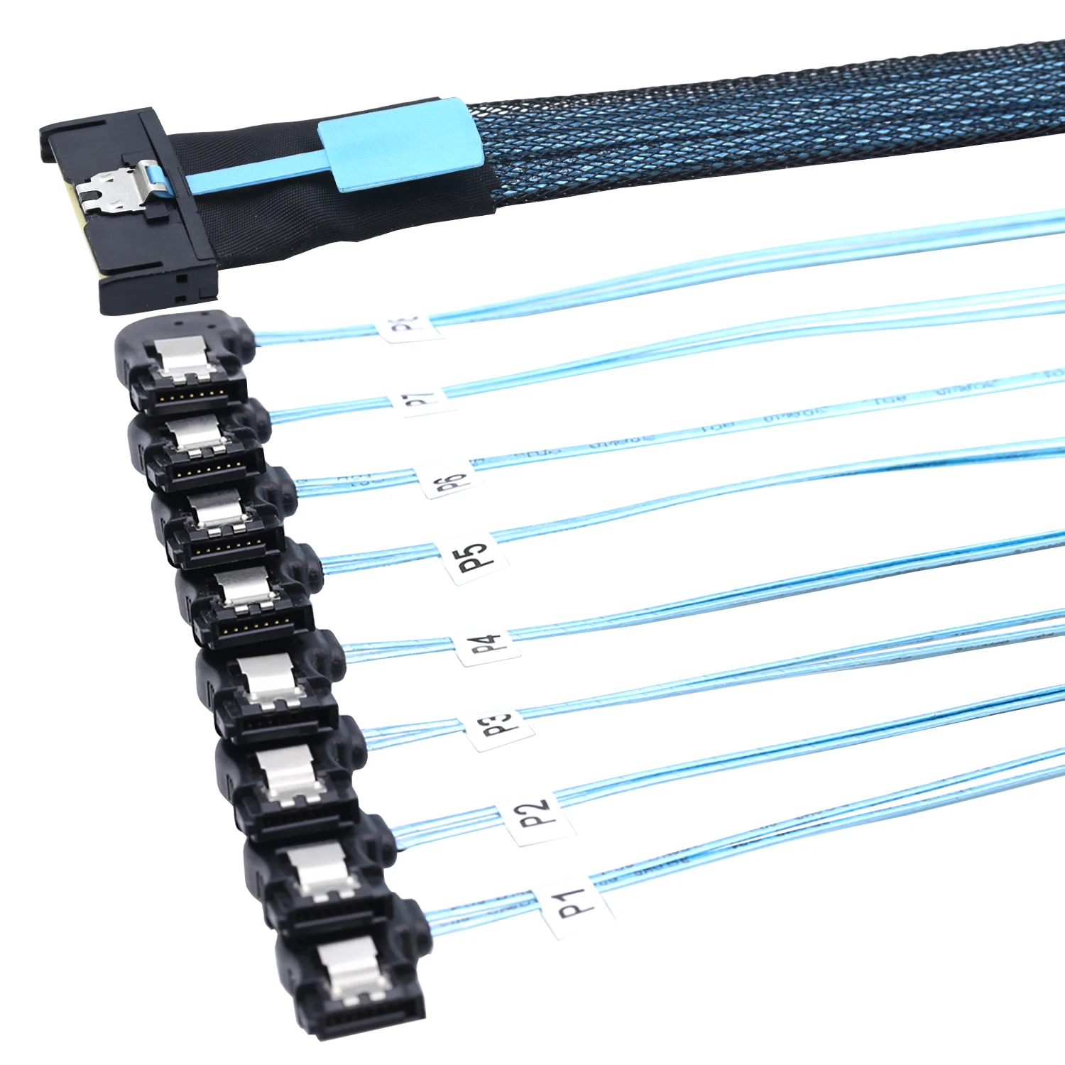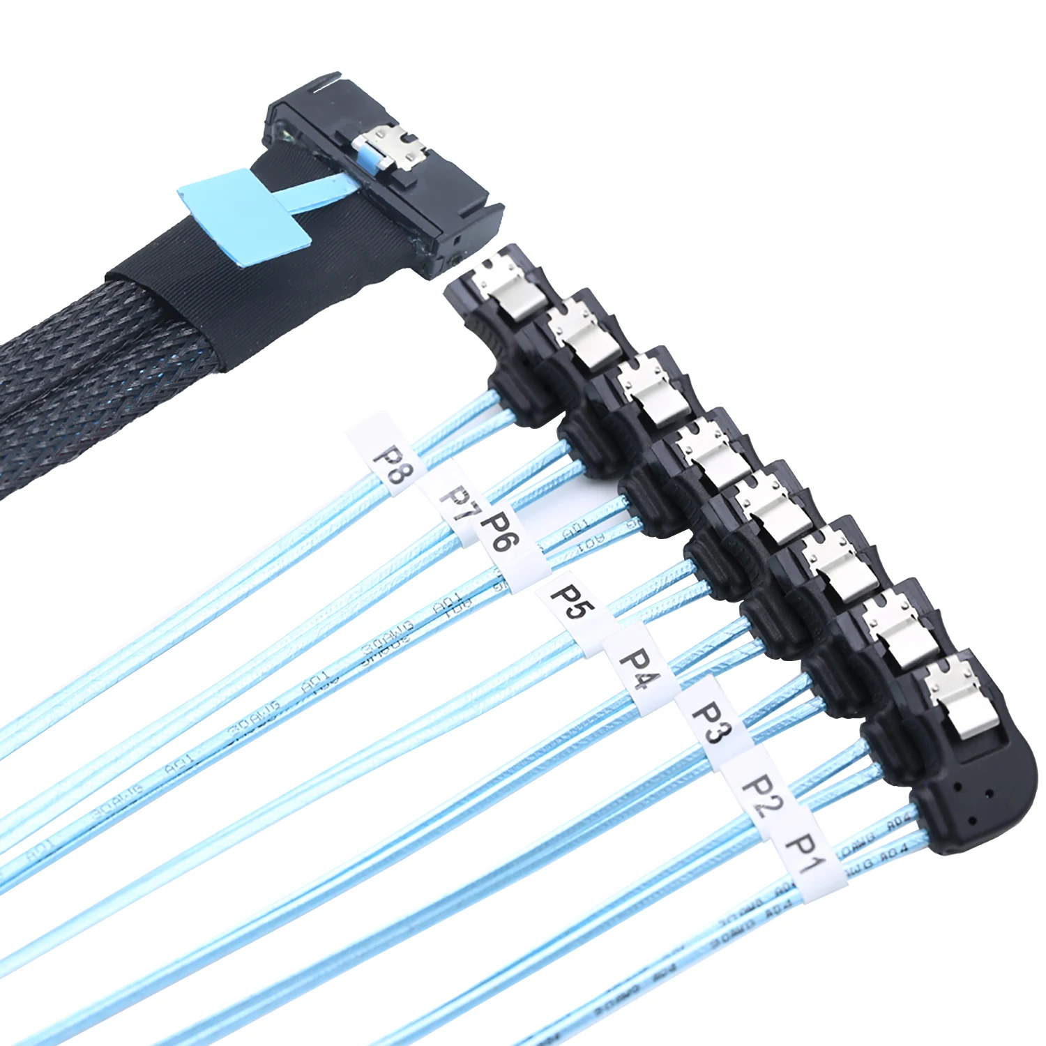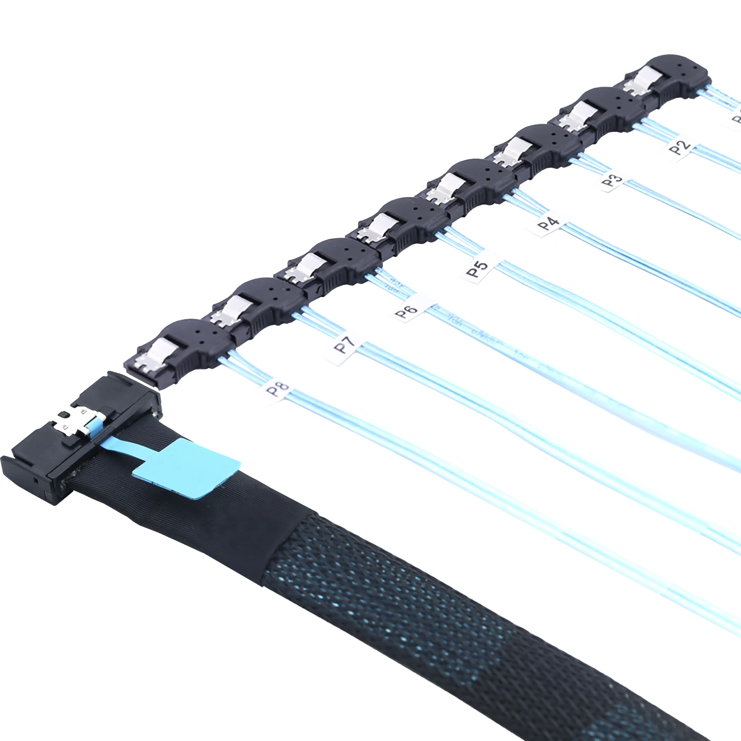 2. Convierte a 8 conectores SATA 7P hembra Left-Hand Bend, que pueden conectar fácilmente múltiples discos duros SATA.