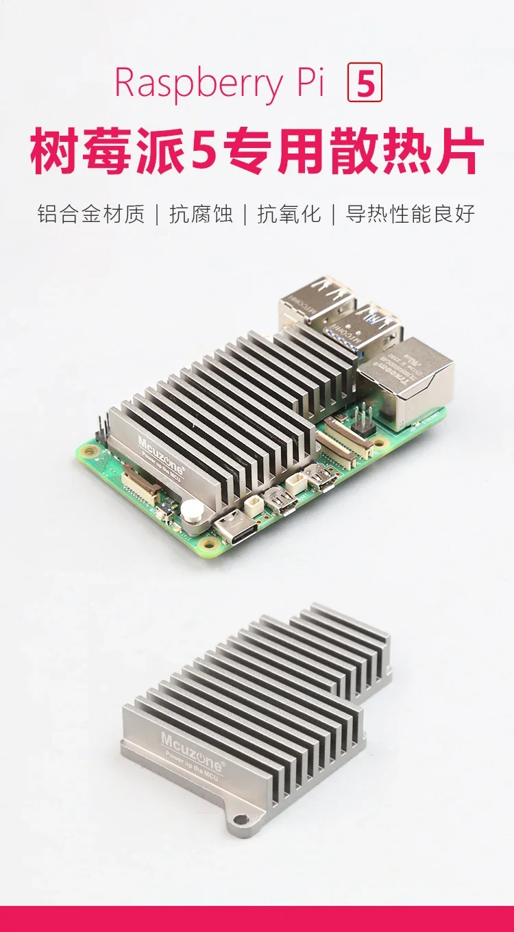 Mcuzone Raspberry Pi 5 disipador térmico Material de aleación de aluminio, excelente resistencia a la corrosión, conductividad térmica, resistencia a la oxidación
