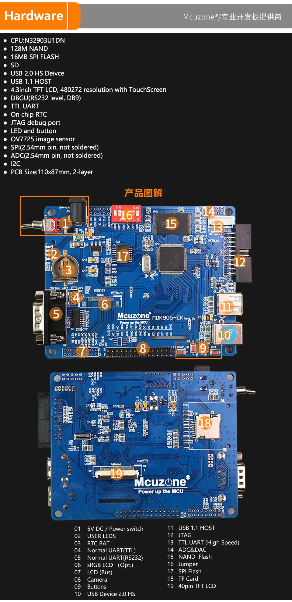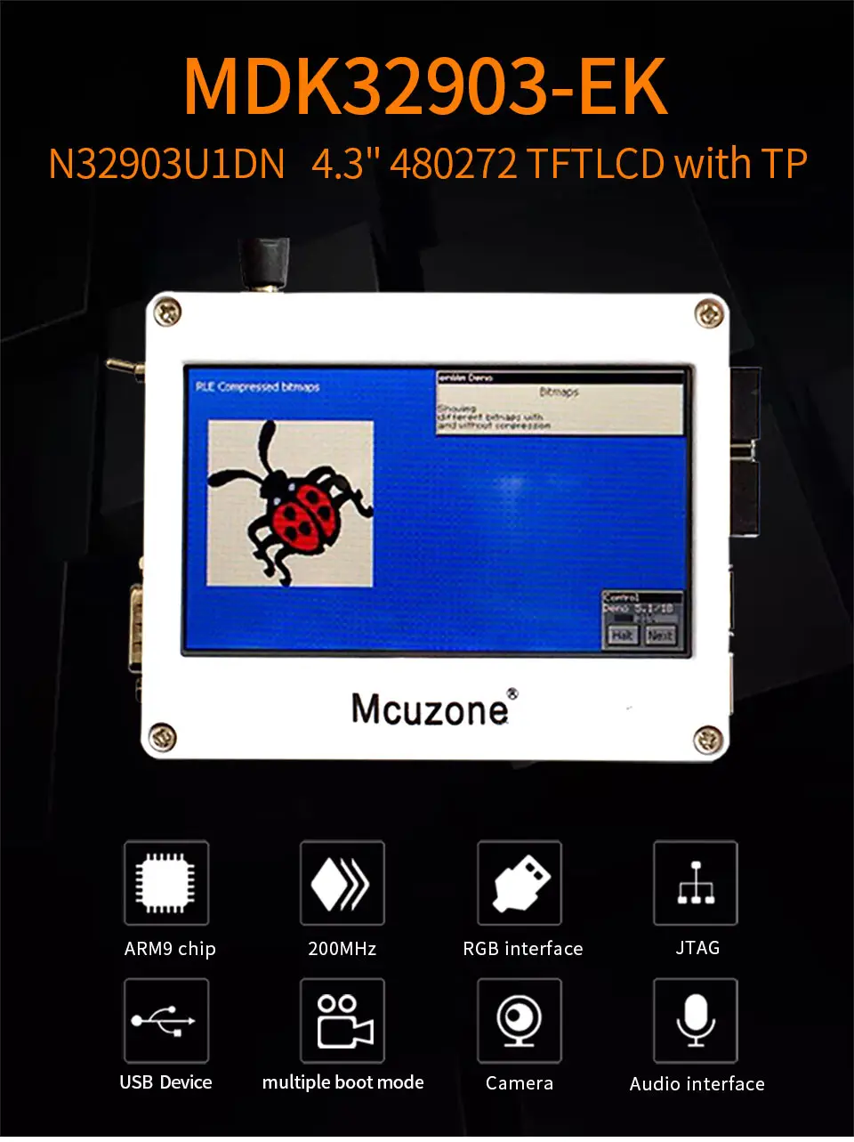 MDK903-EK_T43-OV7725, con sensor de imagen de 0,3 Mpix,UCOS,UCGUI,LCDC, códec JPEG, 4,3" 480272 TFTLCD con TP N32905U1DN NUVOTON ARM9