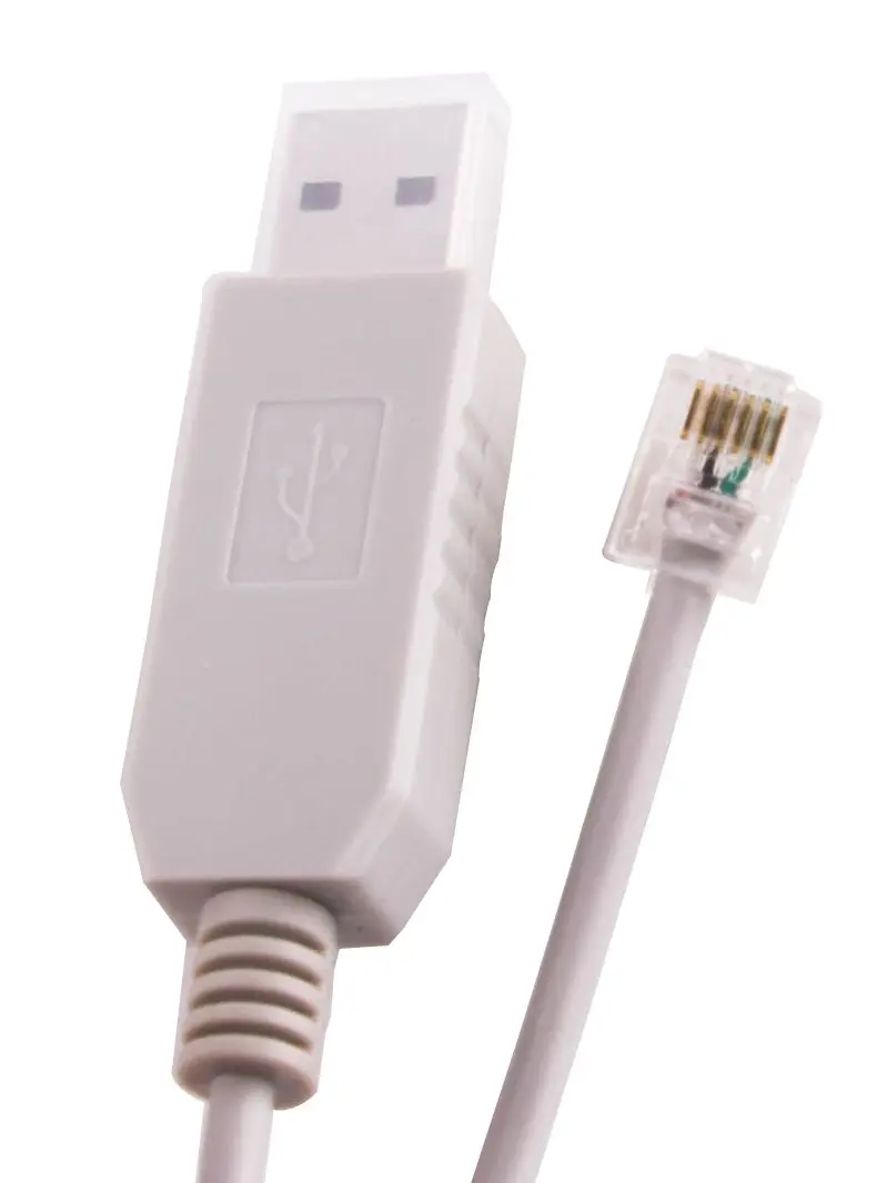 Cable serie RJ12 6P6C, este cable conecta PC/portátil (lado USB) a