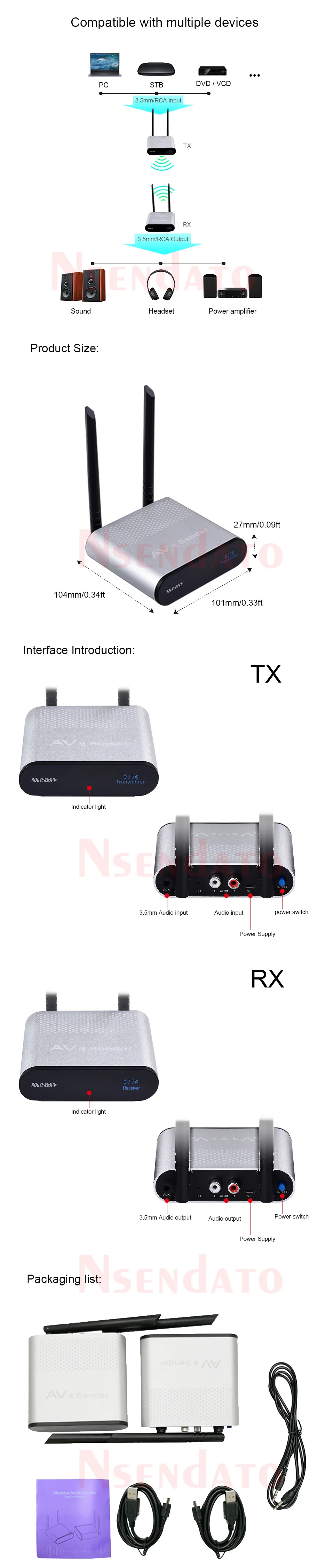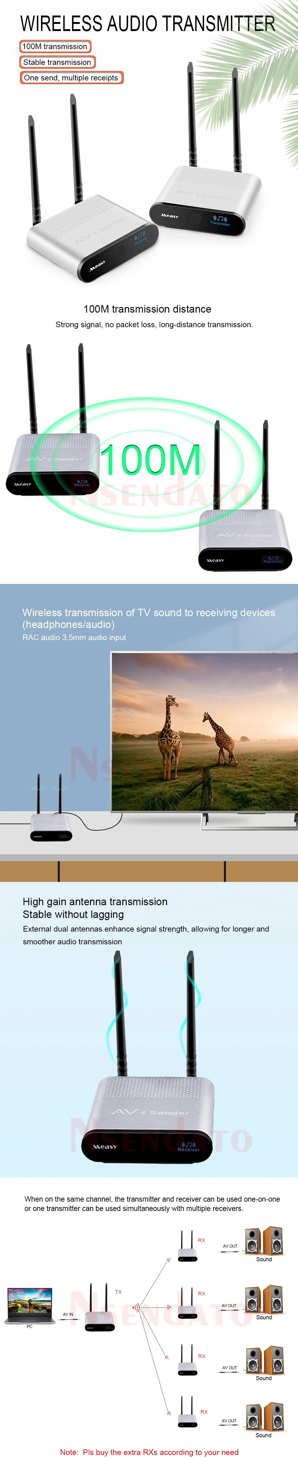 Comprar Measy AU680 749 ~ 770Mhz 100M/330 pies transmisor de Audio Wifi inalámbrico adaptador extensor receptor para PC DVD amplificador de micrófono