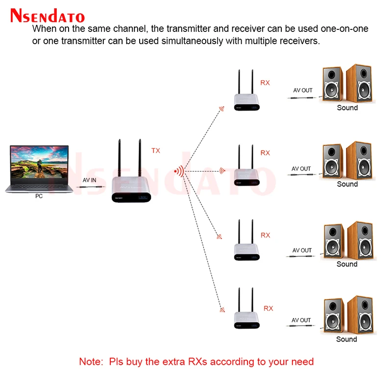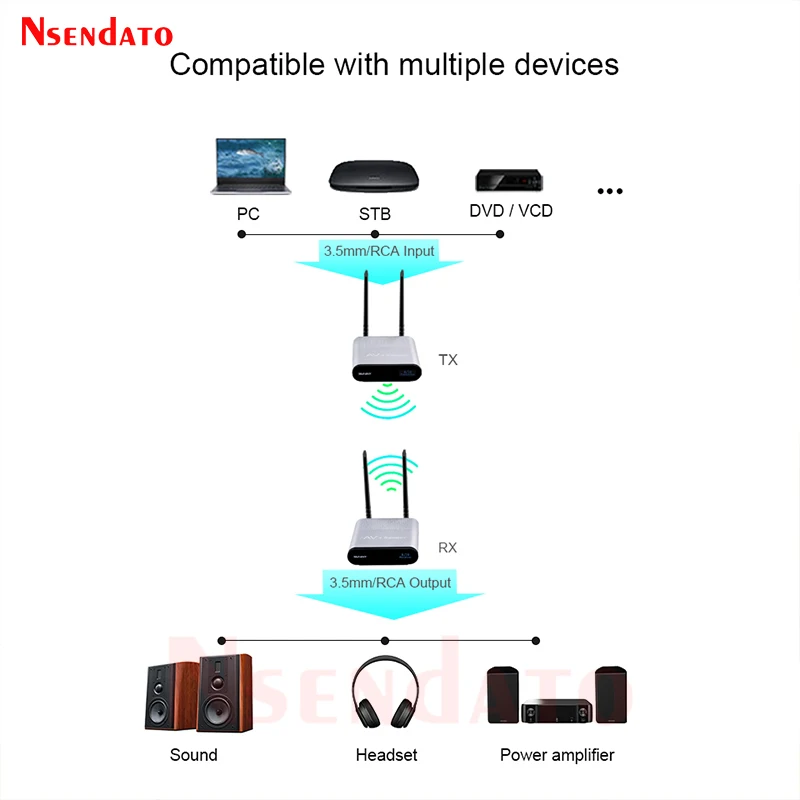 Comprar Measy AU680 749 ~ 770Mhz 100M/330 pies transmisor de Audio Wifi inalámbrico adaptador extensor receptor para PC DVD amplificador de micrófono