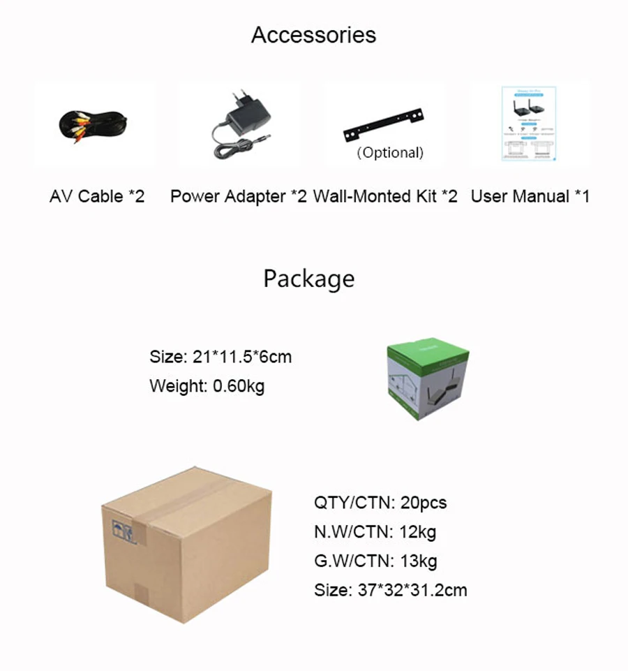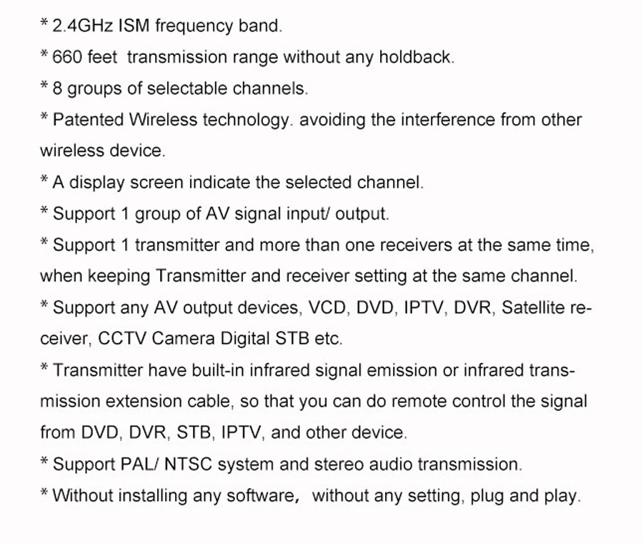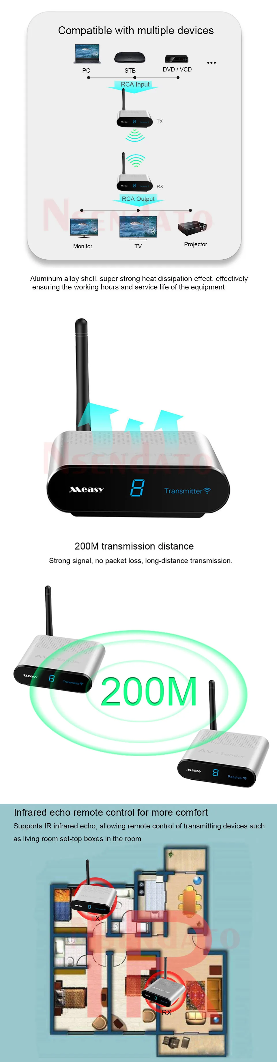 Measy AV220 2,4G inalámbrico AV transmisor receptor Audio vídeo SD TV AV señal remitente receptor ir a través de la pared 200M/660FT
