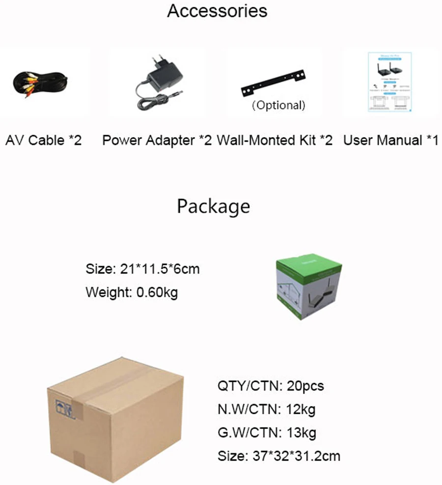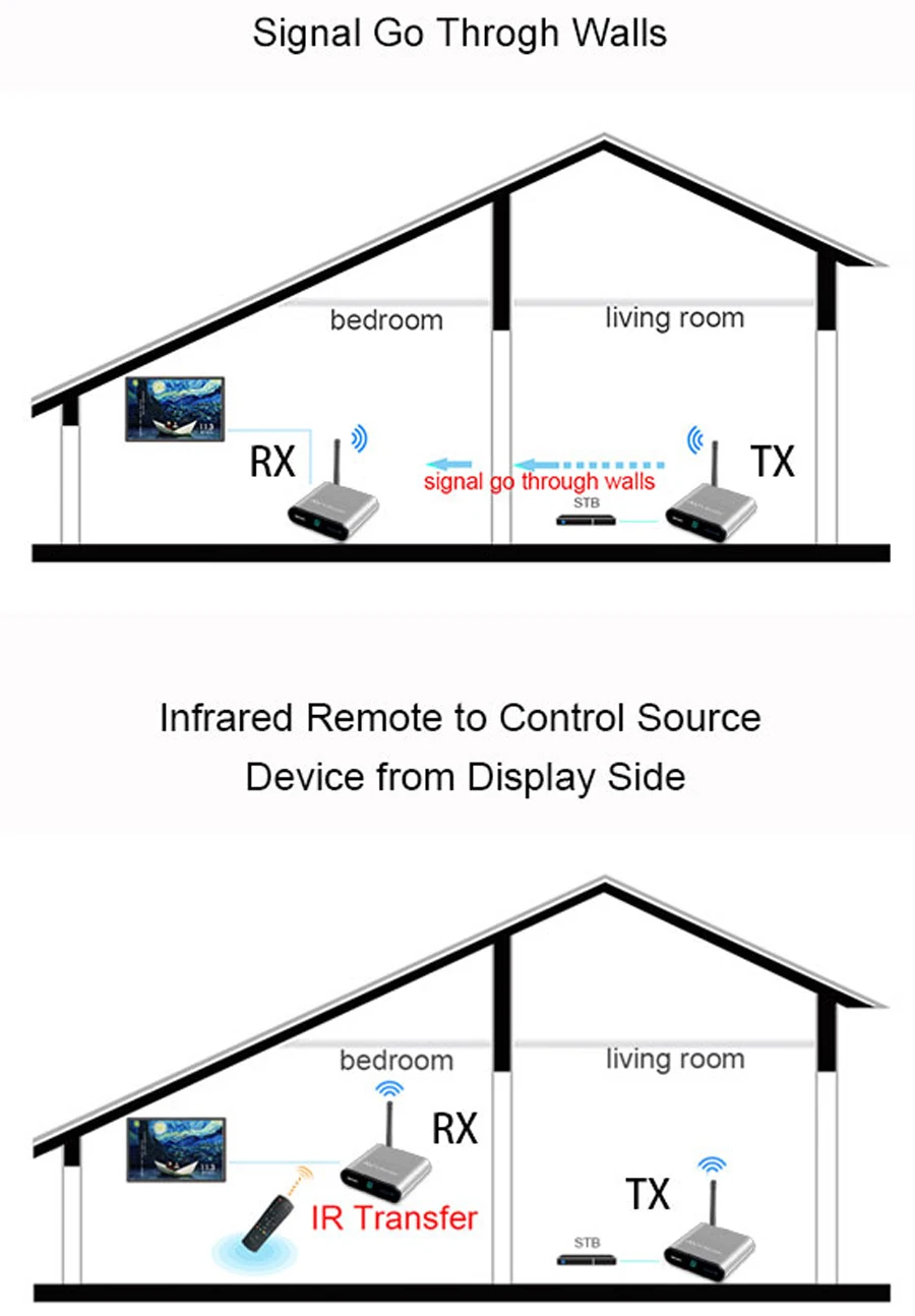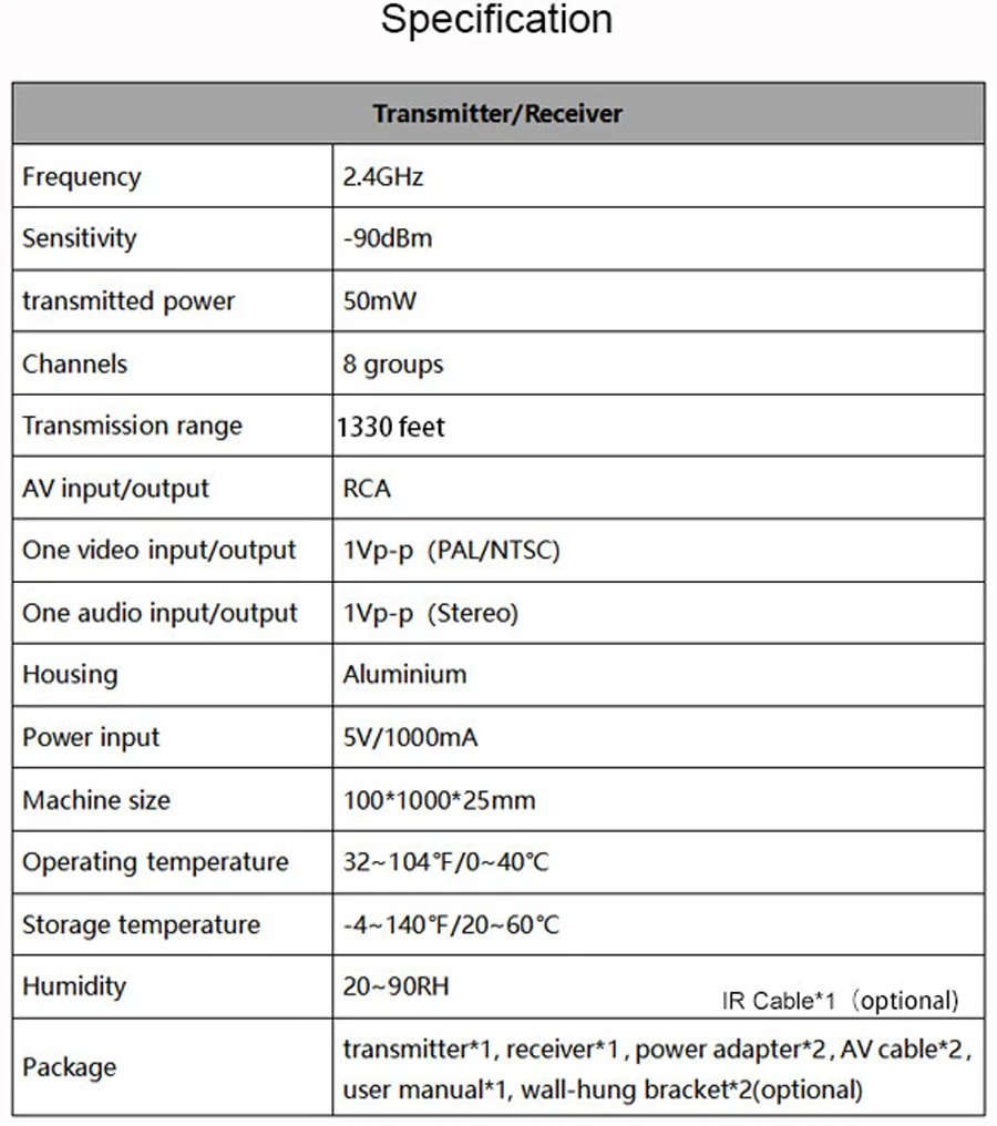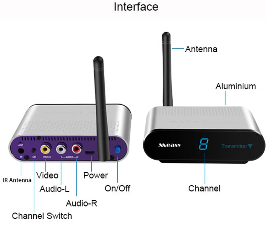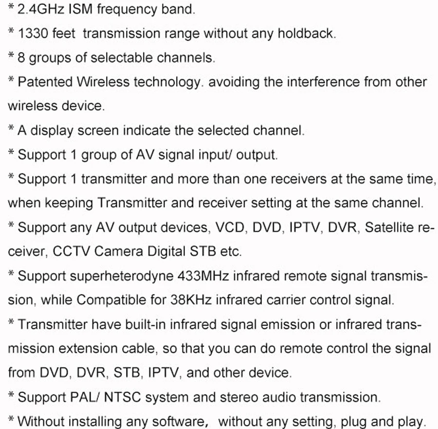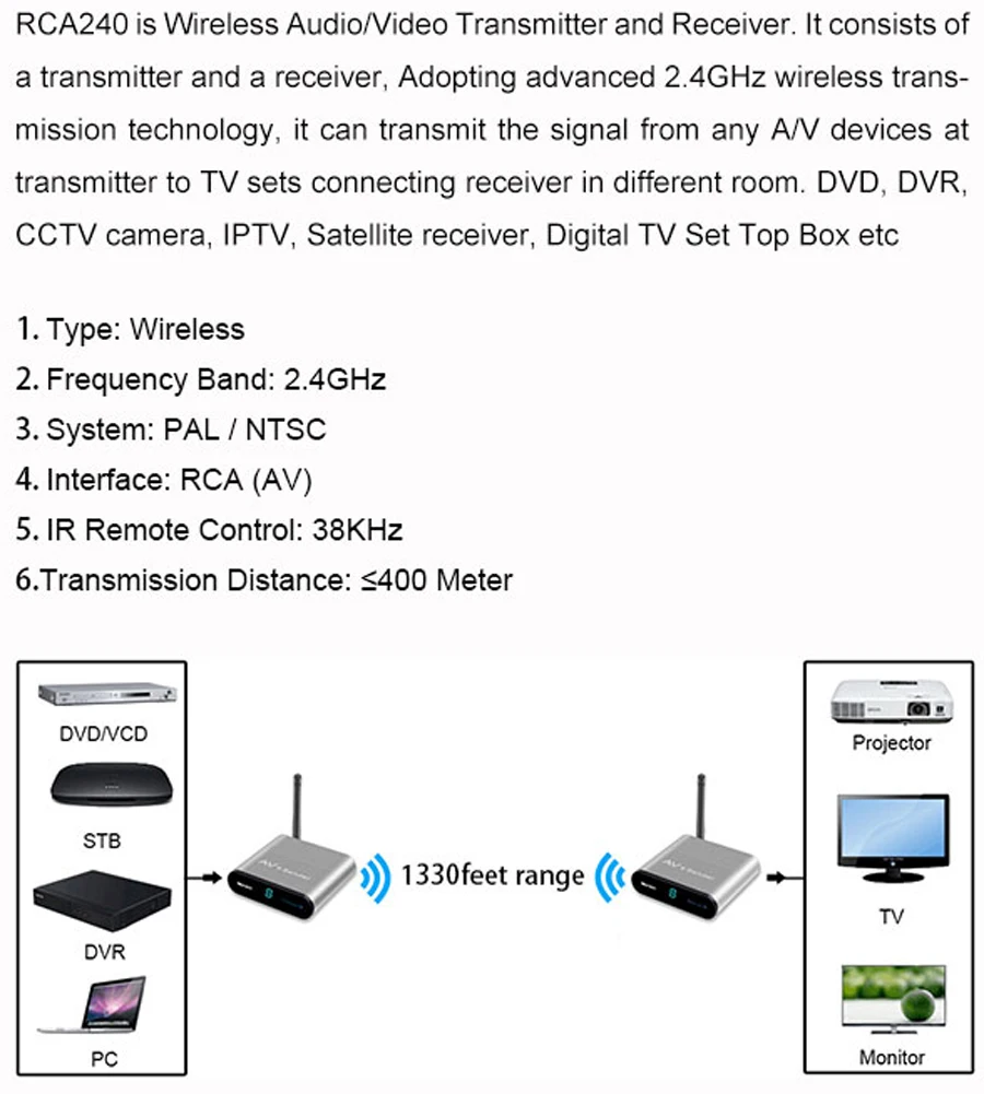 Measy AV240 2,4G transmisor inalámbrico AV receptor Audio Video SD TV AV receptor emisor de señal pasa por la pared 400M / 1330FT