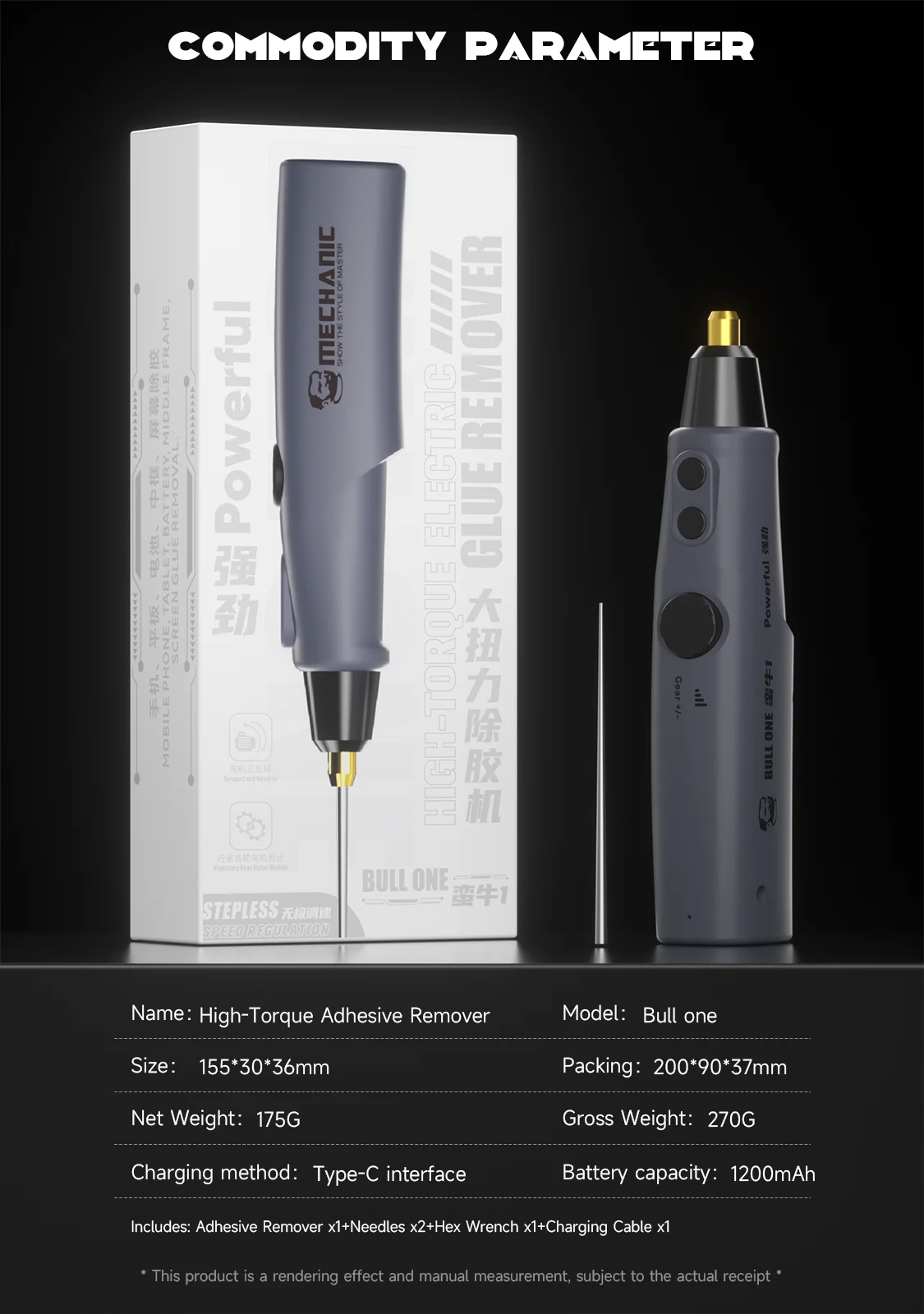 Conozca el removedor de adhesivo de alto par definitivo diseñado para profesionales de reparación de teléfonos móviles y entusiastas del bricolaje: el BULL ONE de MECHANIC.Construida para abordar pegamentos rebeldes sin problemas, esta herramienta combina un rendimiento robusto con un diseño fácil de usar para obtener resultados impecables en todo momento.