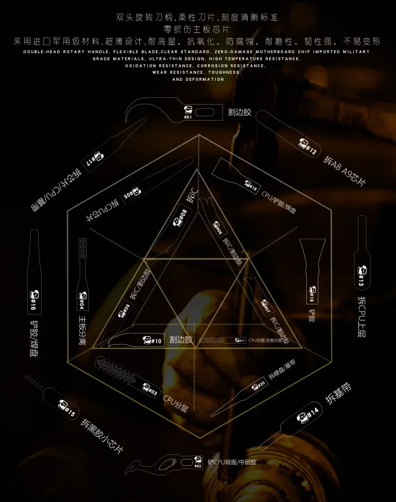 MECHANIC iMax9 Kit de cuchillo de reparación de placa base multifuncional Teléfono móvil CPU IC Chip Eliminación de pegamento Hoja Herramientas de retrabajo