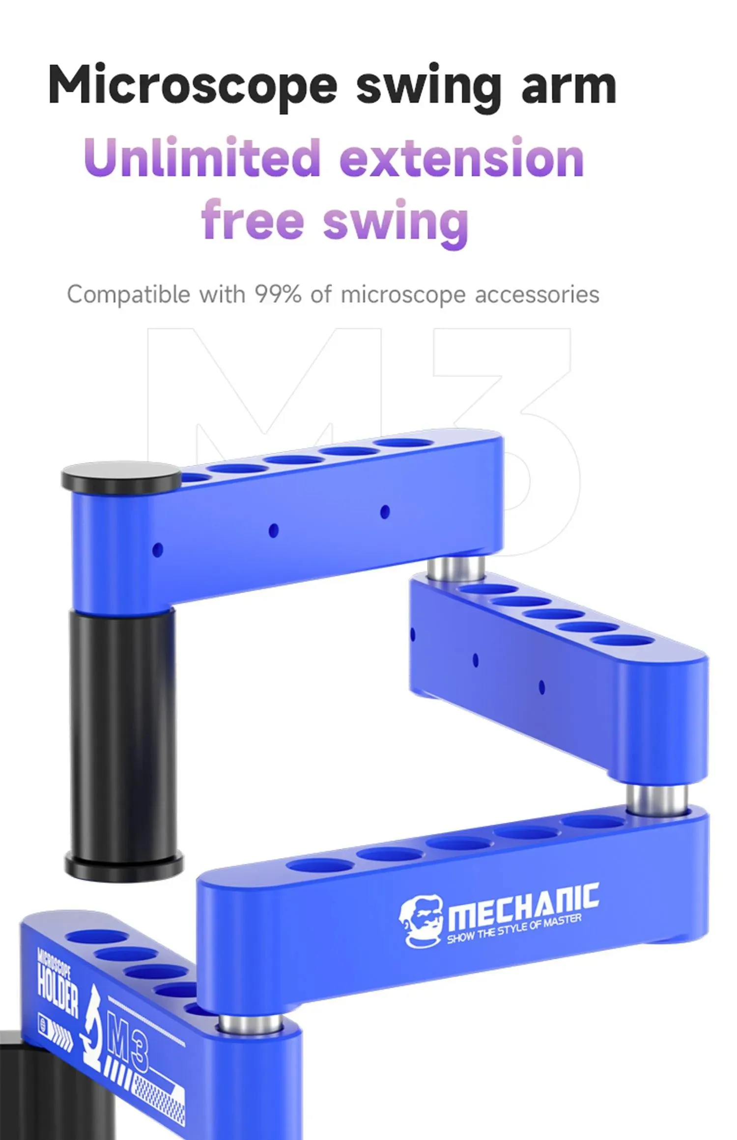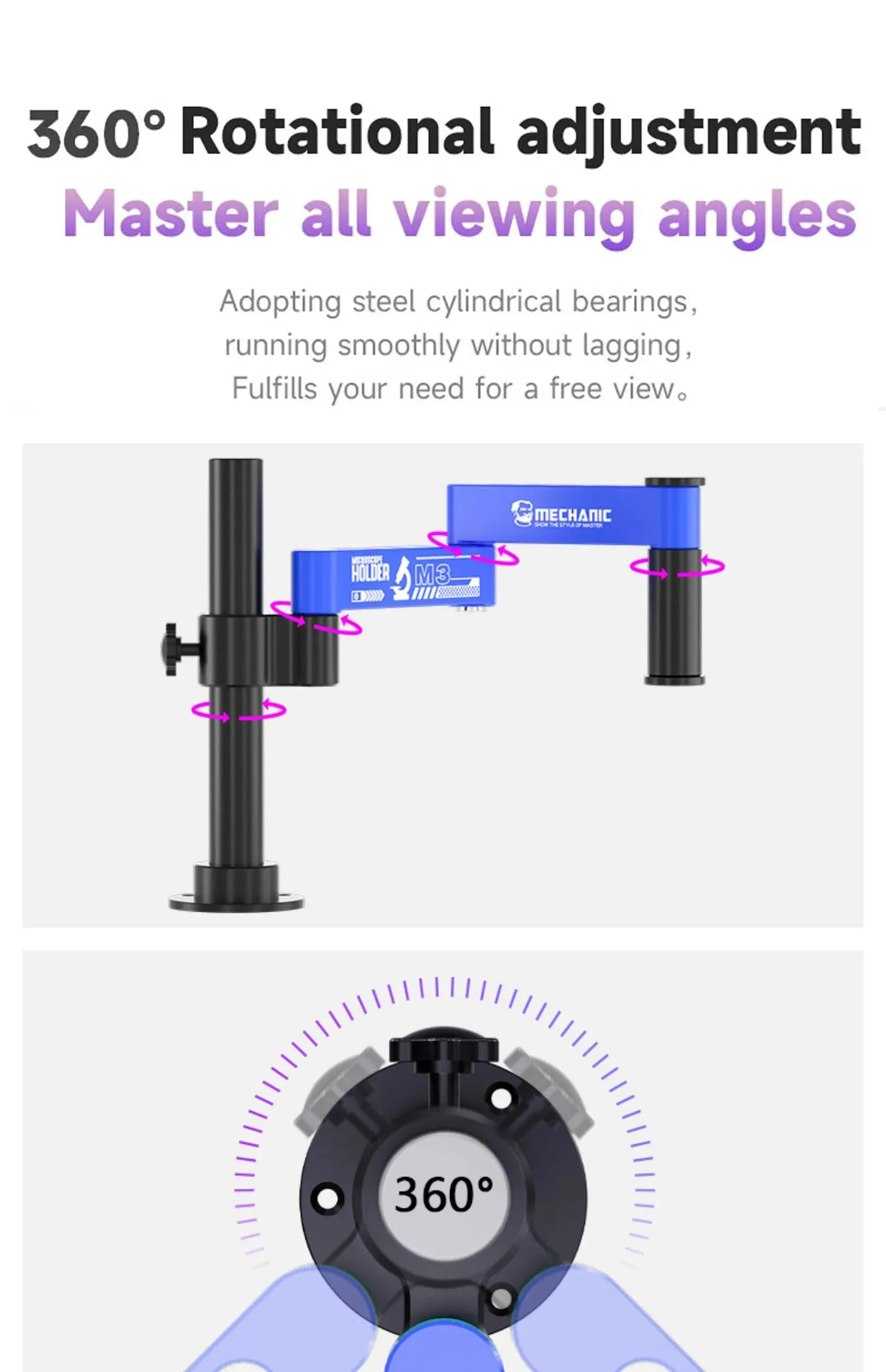 MECÁNICO M3 360° Brazo oscilante ajustable para microscopio, rotación extendida para mantenimiento de microscopio, herramienta de soporte oscilante