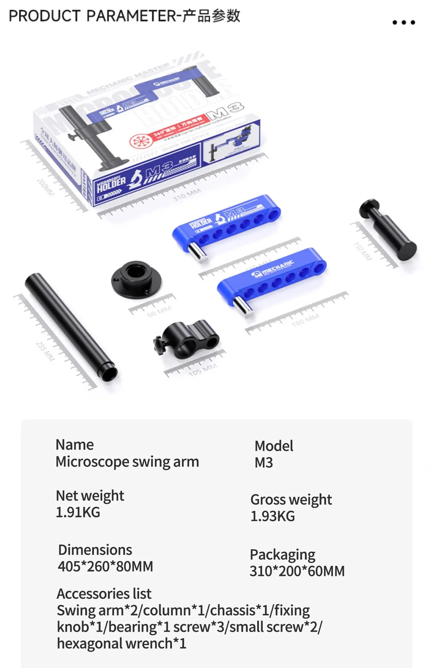MECHANIC es una marca confiable de herramientas de reparación, comprometida a ofrecer productos que combinen durabilidad, precisión y facilidad de uso. El brazo articulado M3 está rigurosamente probado para satisfacer las demandas del trabajo de precisión moderno, lo que lo convierte en su solución ideal para una observación estable y flexible.