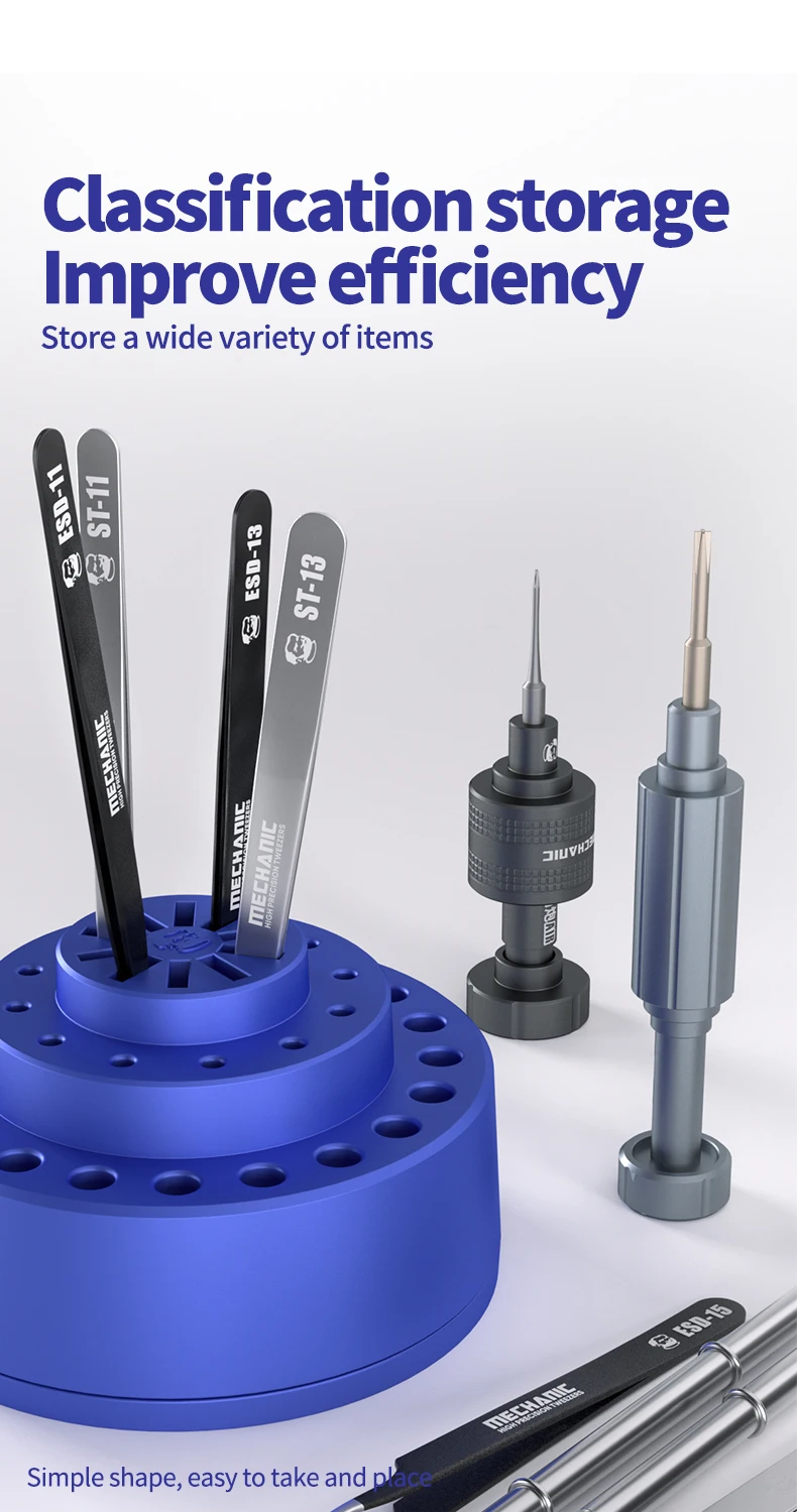 Justo lo que necesitaba para guardar mis destornilladores y pinzas. Gira suavemente y la base es antideslizante. Bien embalado y entrega rápida.