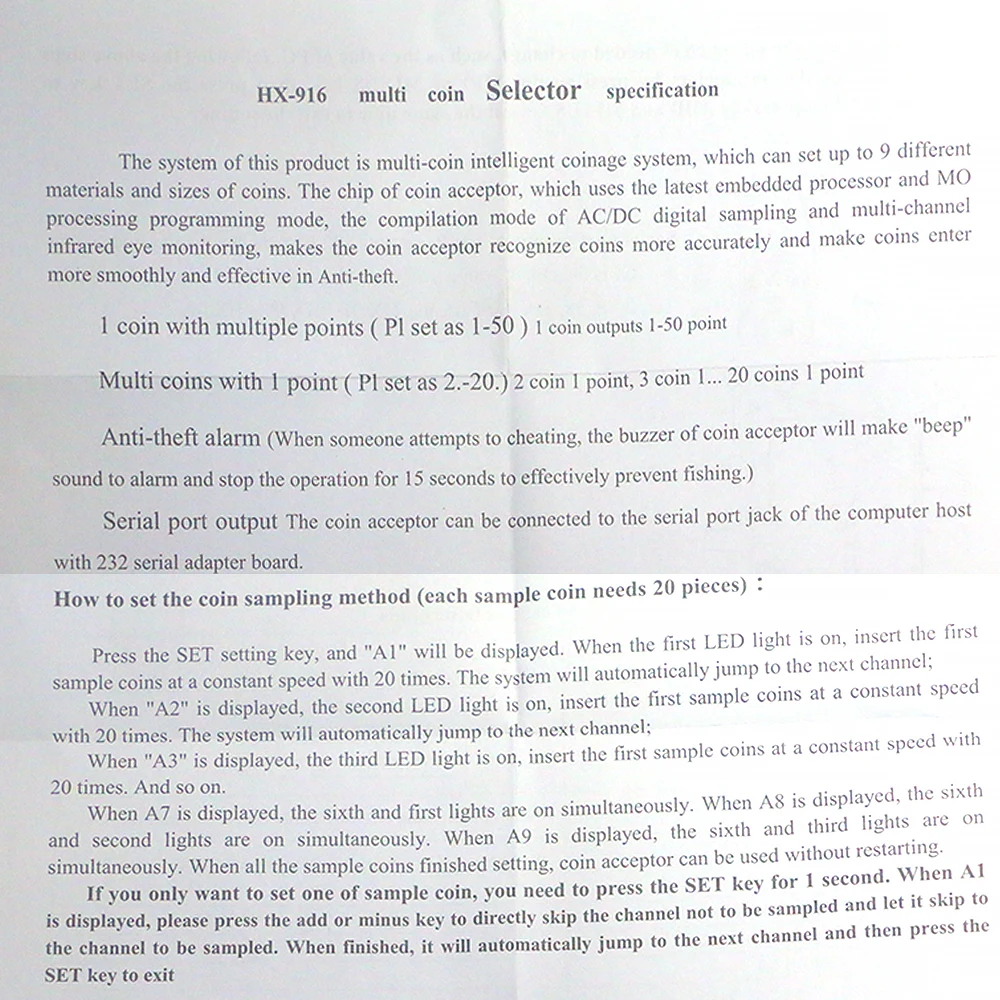 El sistema de este producto es un sistema de monedas inteligente con varias monedas, que puede configurar hasta 9 materiales y tamaños diferentes de monedas.¡El chip del aceptador de monedas, que utiliza el último procesador integrado y el modo de programación de procesamiento MO, el modo de compilación de muestreo digital AC/DC y multicanal!¡El monitoreo ocular por infrarrojos hace que el aceptador de monedas reconozca las monedas con mayor precisión y cree las monedas!Más suave y eficaz en antirrobo.