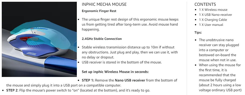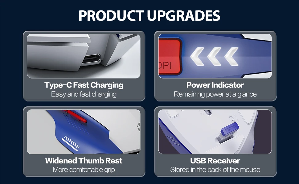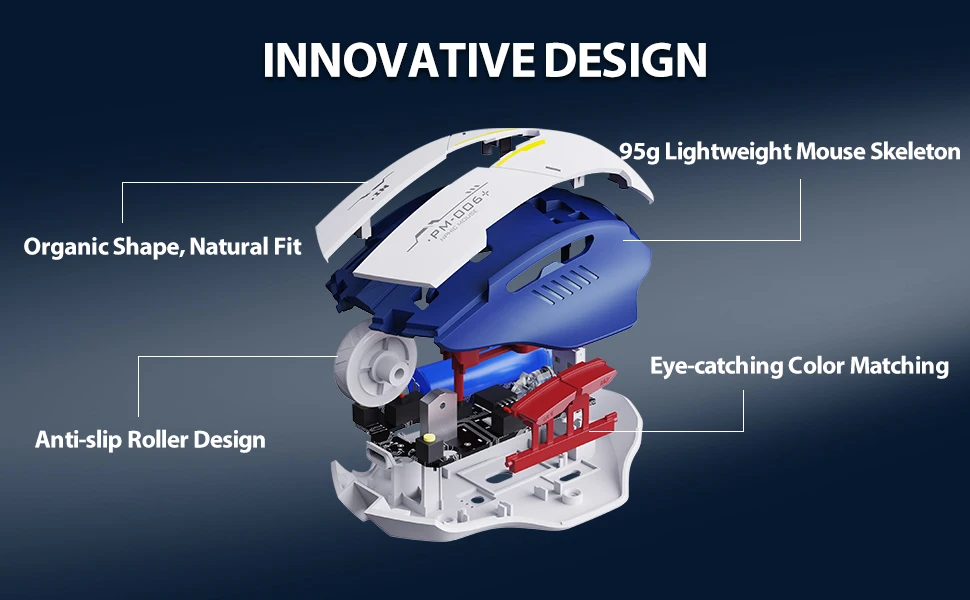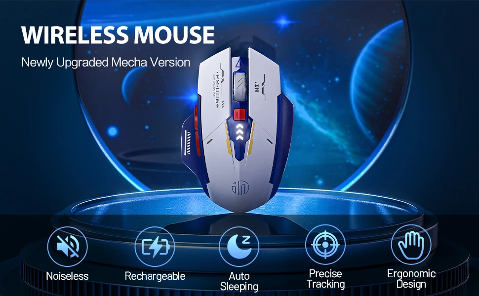 【COOL MECHA COLOR MATCHING】La Rica forma mecha y el impacto visual de la combinación de azul y blanco hacen que este ratón inalámbrico sea reconocible según el grado de reconocimiento. Es una excelente opción entre muchos ratones.