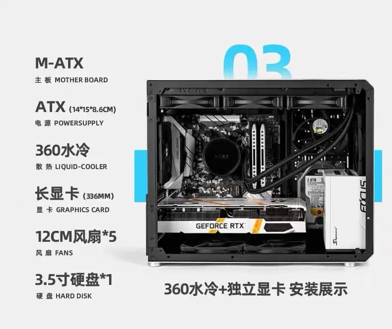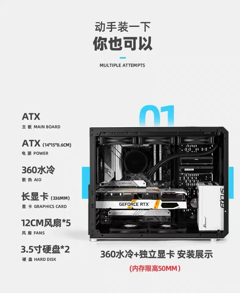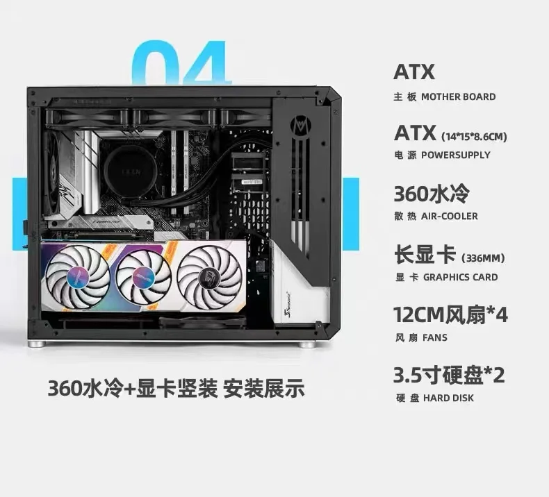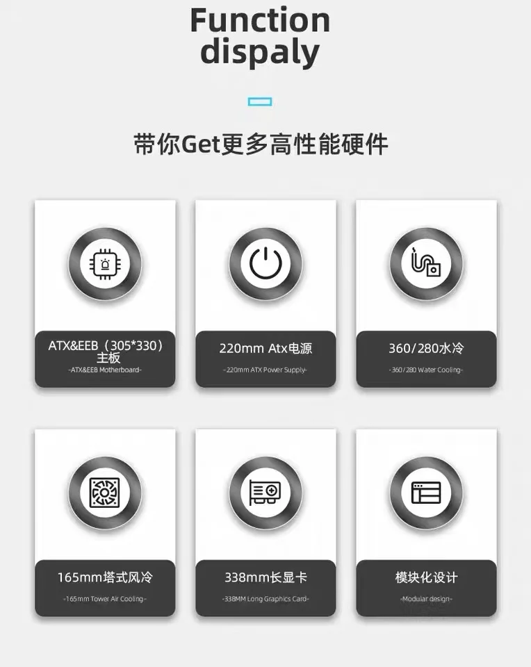 3. Soporte de tarjeta gráfica (GPU): La longitud máxima admite 420mm, la longitud recomendada es de 338mm y la altura es de 150mm.