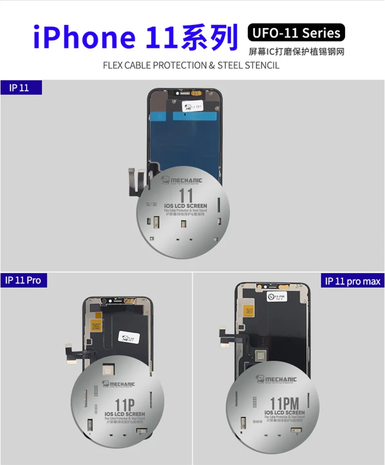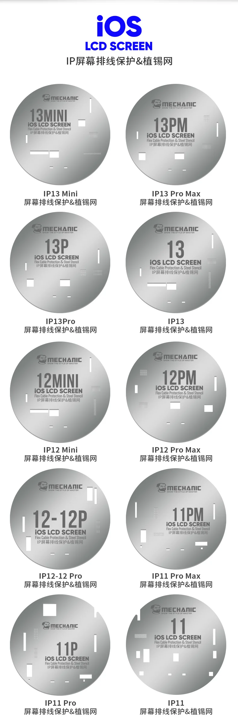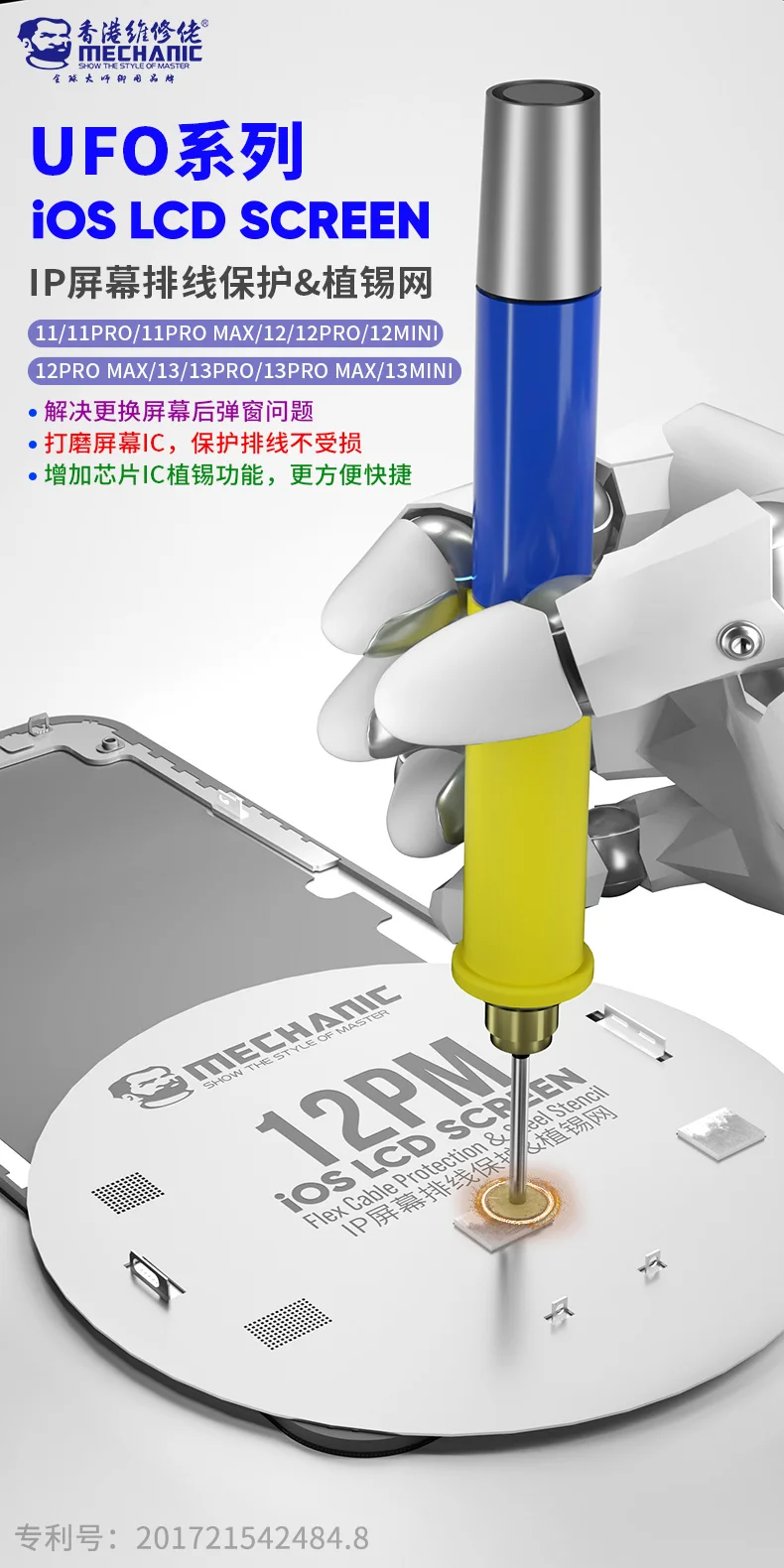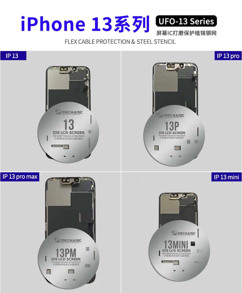 Mechanic-plantilla de acero UFO, protección de pantalla LCD para iPhone 11, 12, 13, mini Pro Max, IC, pulido de pantalla, reparación emergente, 10 unidades