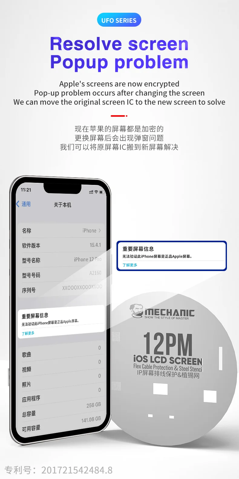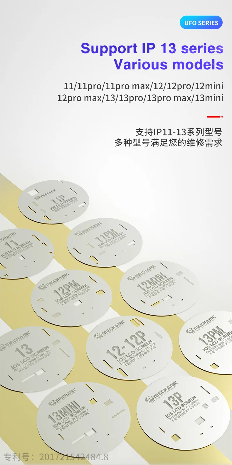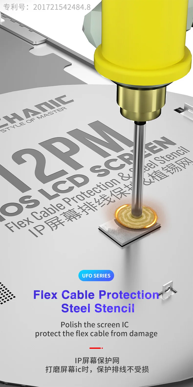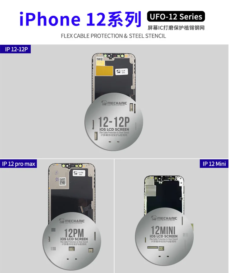 Mechanic-plantilla de acero UFO, protección de pantalla LCD para iPhone 11, 12, 13, mini Pro Max, IC, pulido de pantalla, reparación emergente, 10 unidades