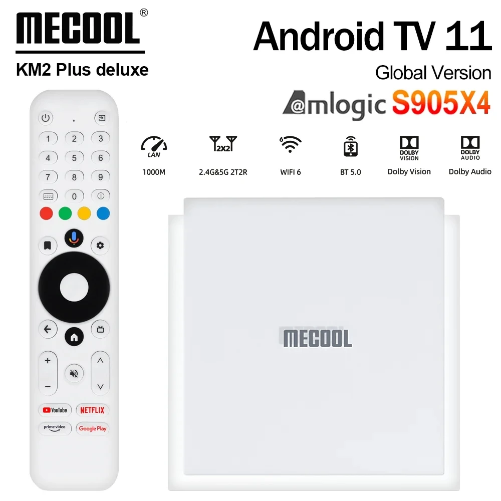 Mecool KM2 Plus Deluxe Android 11 TV Box Amlogic S905X4 1000M 4K ATV BOX 5G WiFi 6 Dolby Audio Media Player Set Top Box