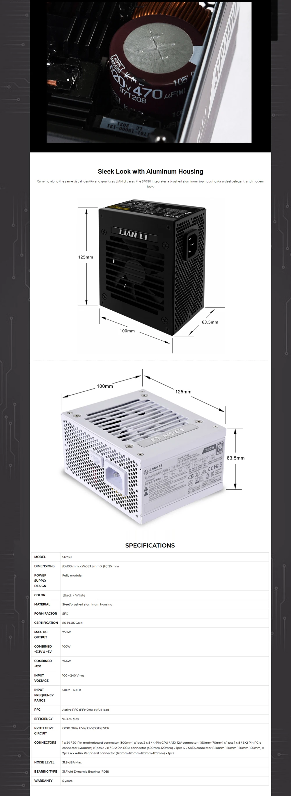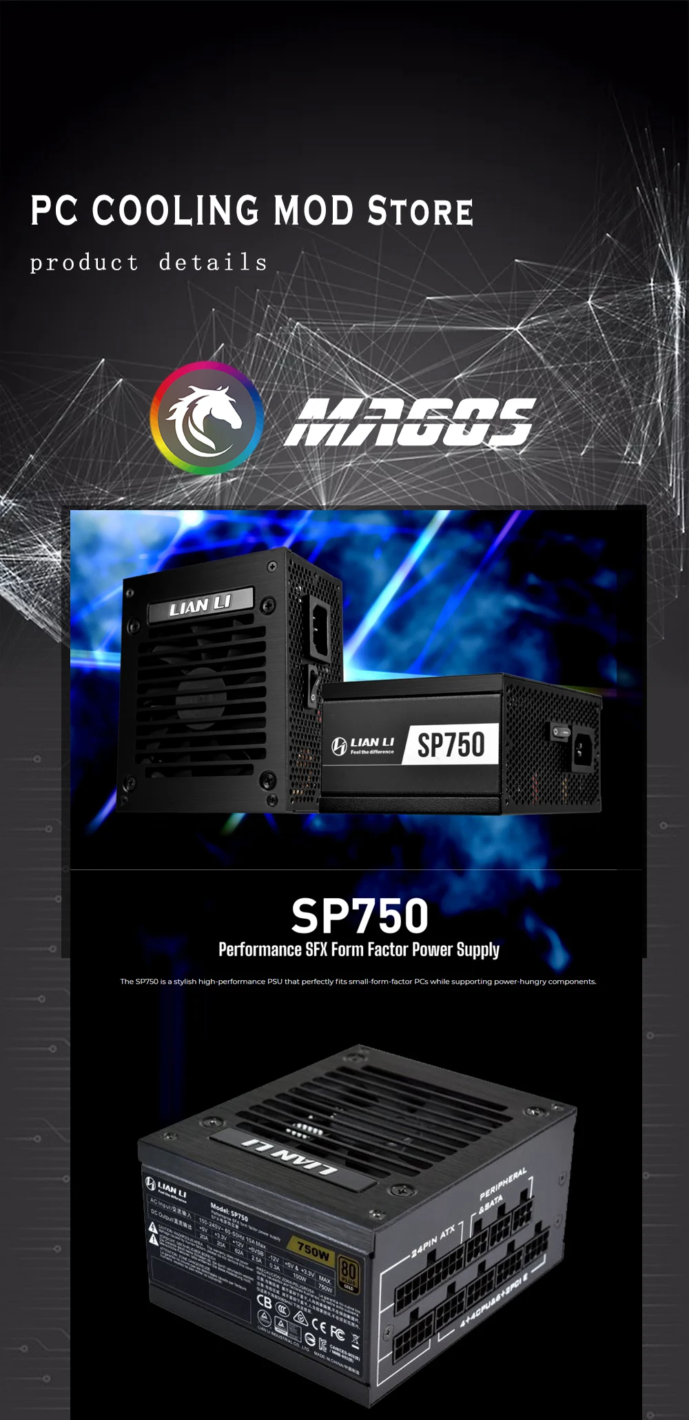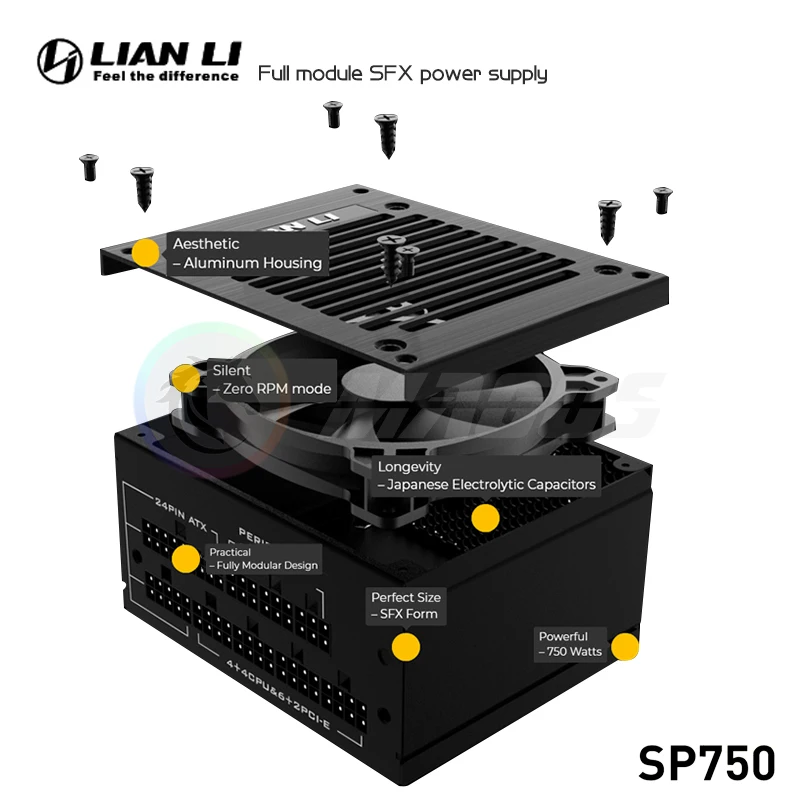 Medalla dorada LIAN LI 750W ITX SFX PSU, módulo completo para computadora, Mini funda ITX, fuente de alimentación para juegos de PC, escritorio, SP750, negro
