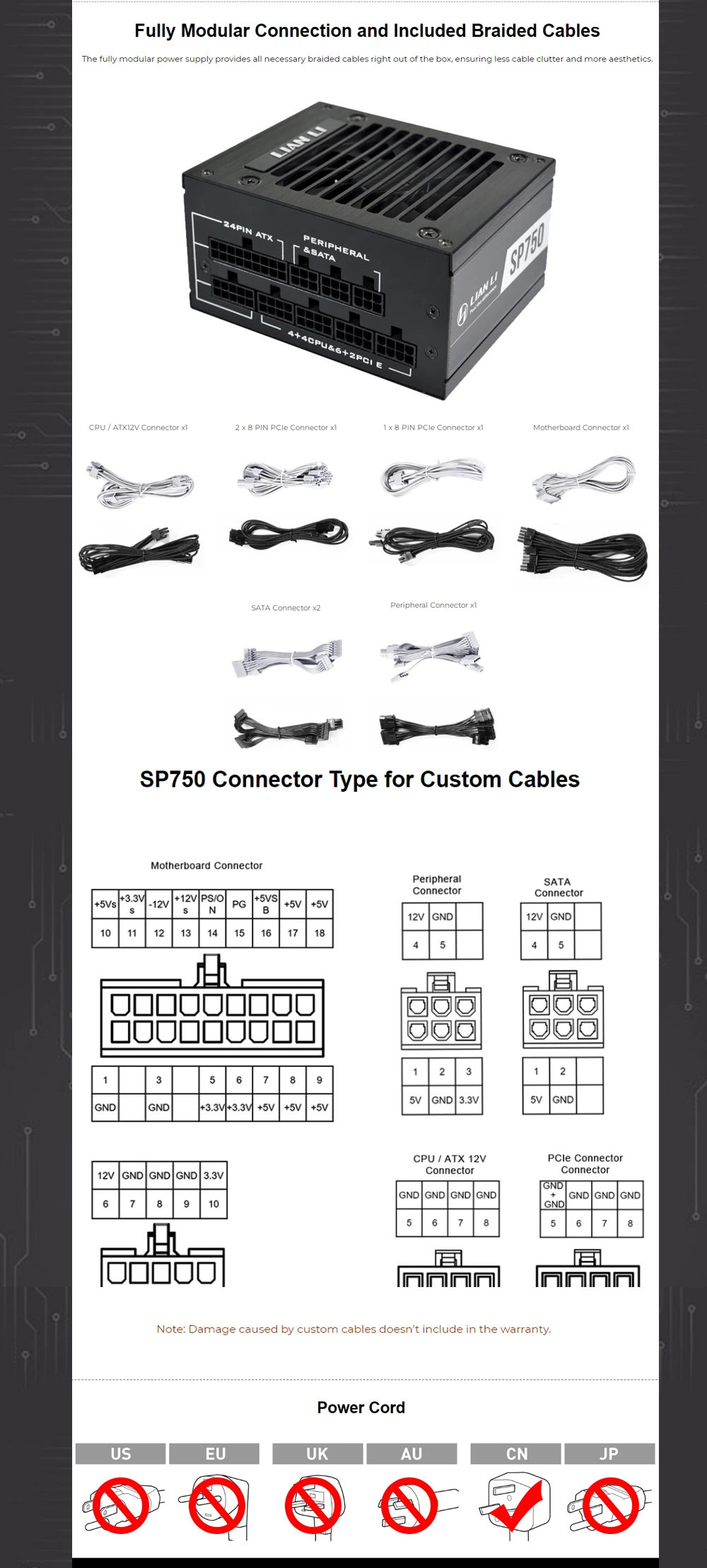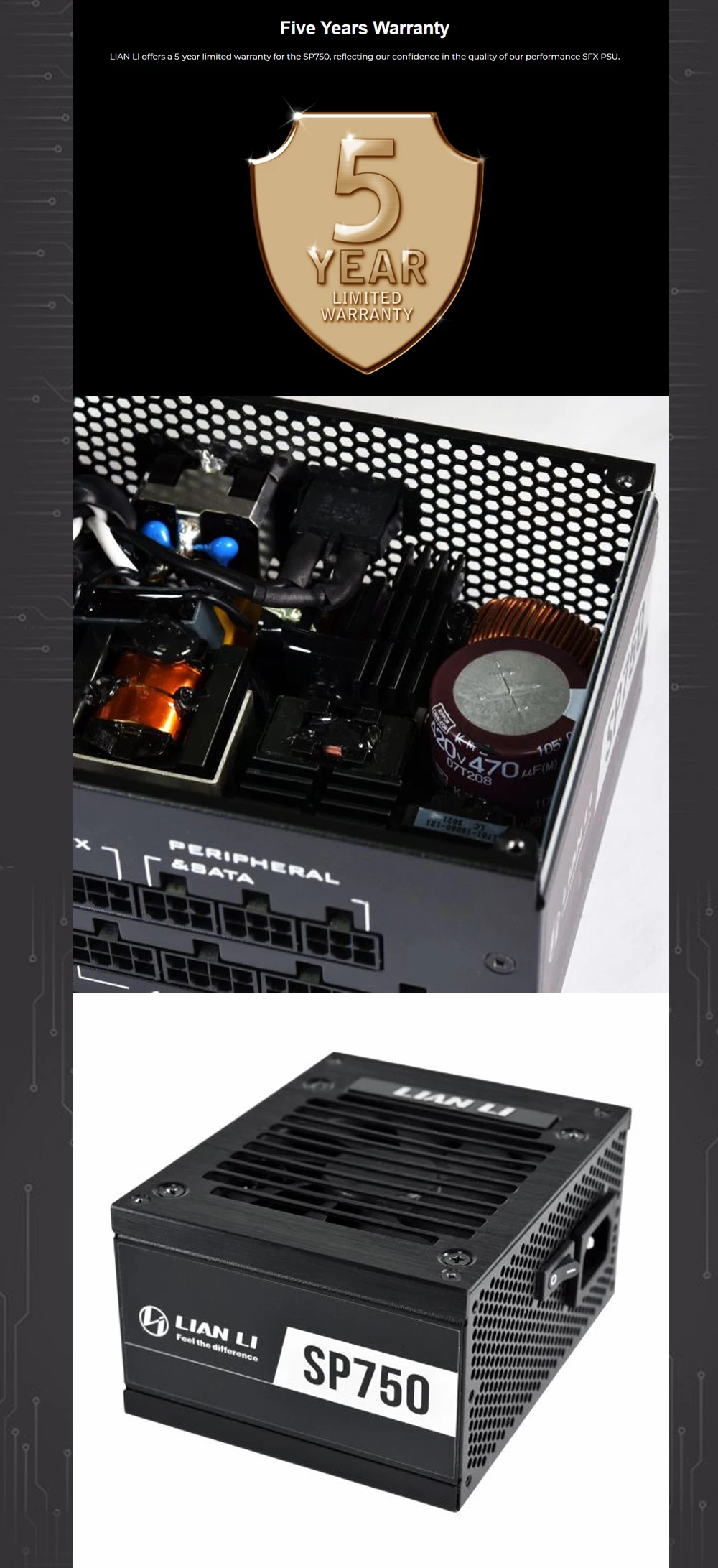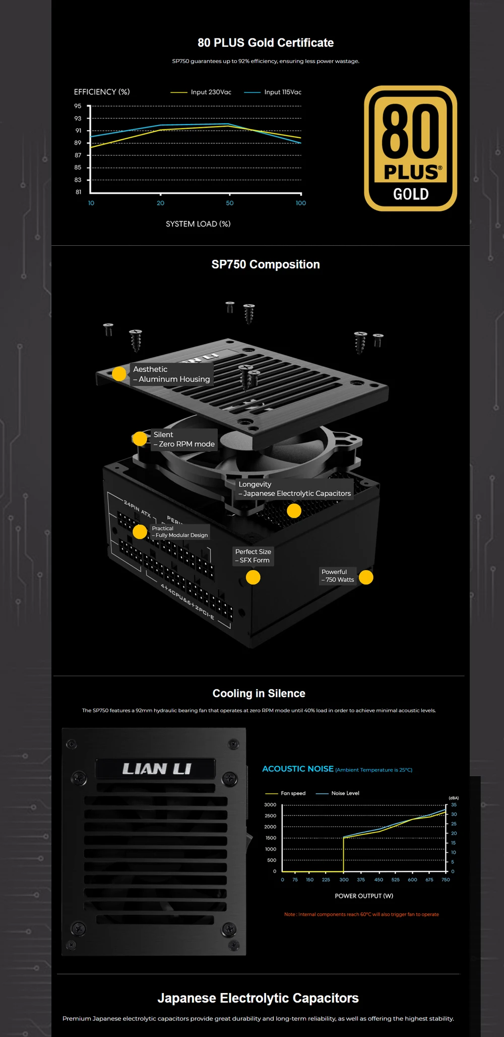 Medalla dorada LIAN LI 750W ITX SFX PSU, módulo completo para computadora, Mini funda ITX, fuente de alimentación para juegos de PC, escritorio, SP750, negro
