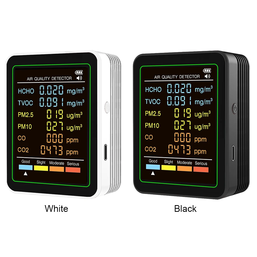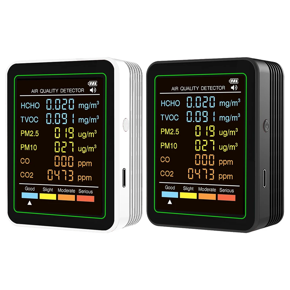 Monitor de calidad del aire 6 en 1, probador de calidad del aire en tiempo Real, Detector portátil de temperatura y humedad para oficina, escuela y Hotel