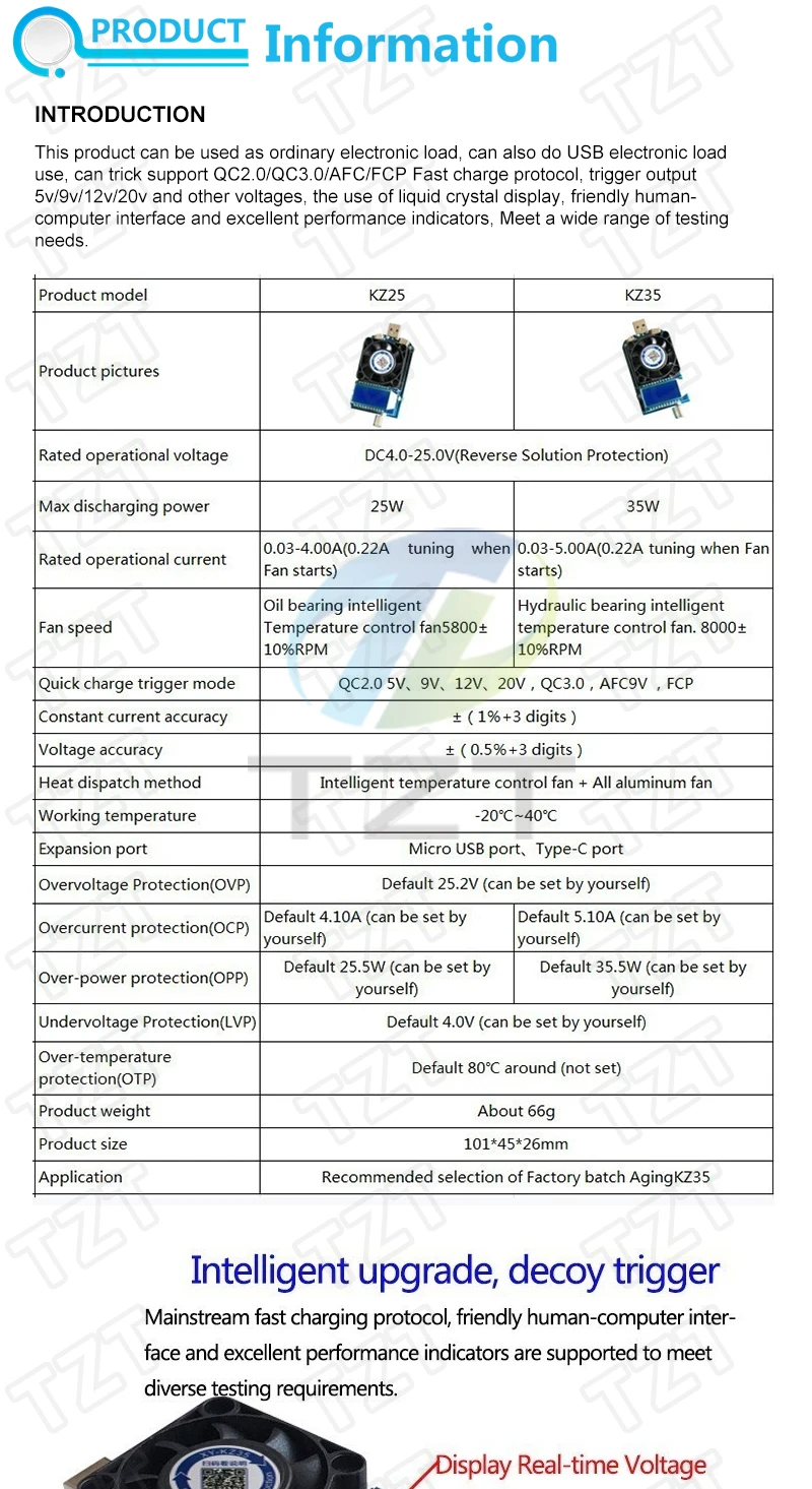 Medidor de capacidad de descarga, carga electrónica de corriente constante, USB tipo C, QC2.0/3,0, AFC, FCP, 1 piezas, KZ35