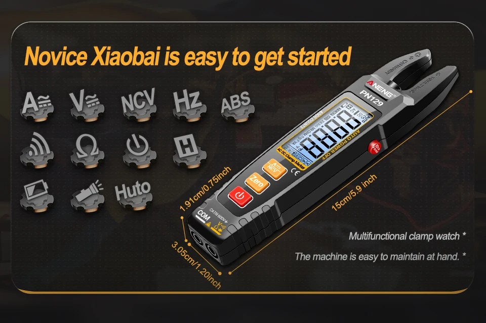 ⚡ ¡Mida la corriente sin romper el circuito!El ANENG PN129 combina pruebas de abrazadera 100A + inducción NCV para máxima seguridad: