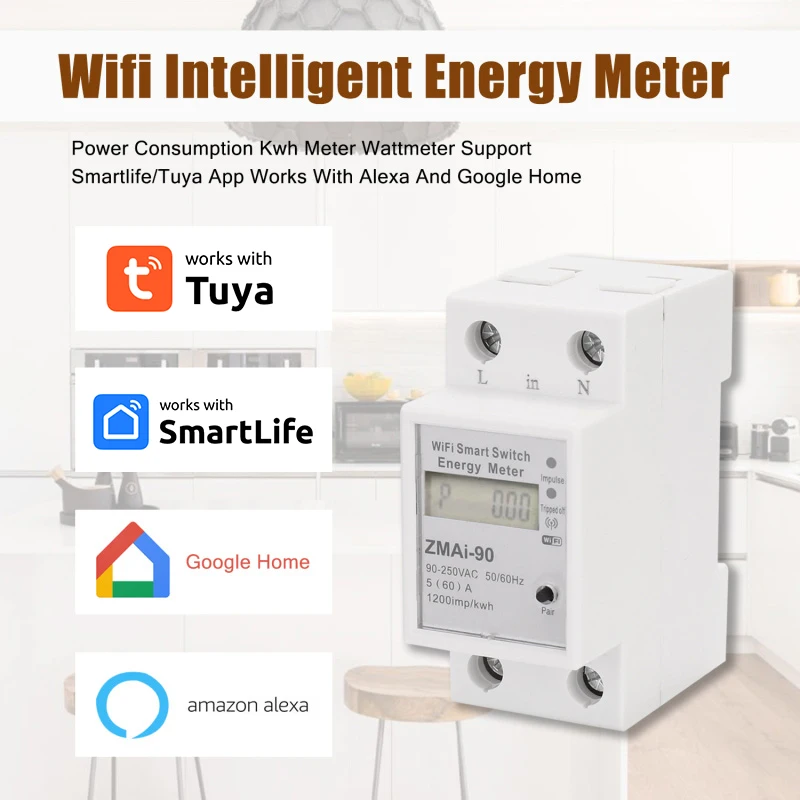 Comprar Medidor de energía con interruptor inteligente, voltímetro, vatímetro, Wifi, 90, modelo de ZMAI-90, medidor de potencia, aplicación Tuya Smart Life, funciona con Alexa