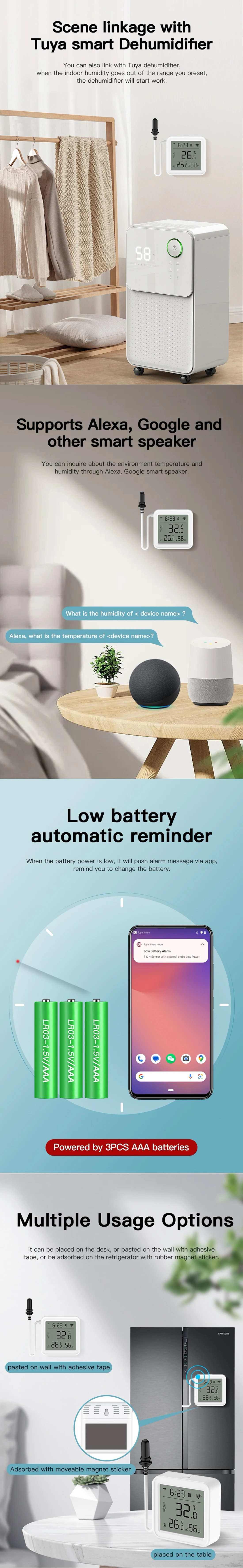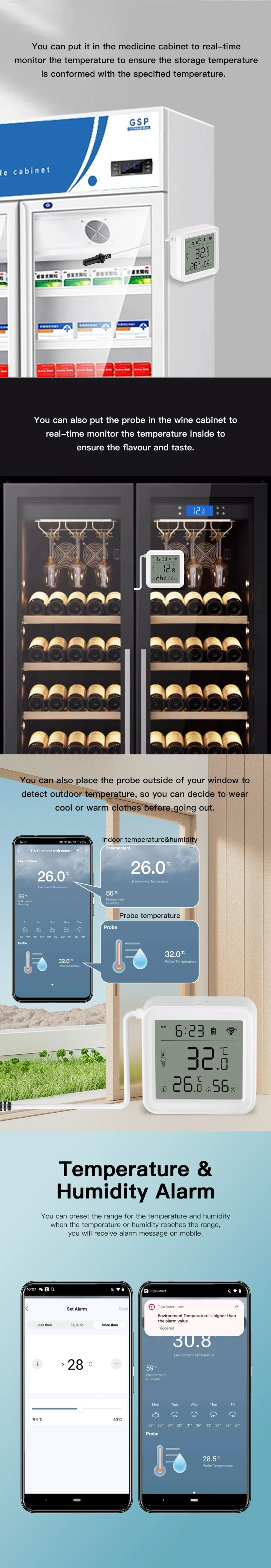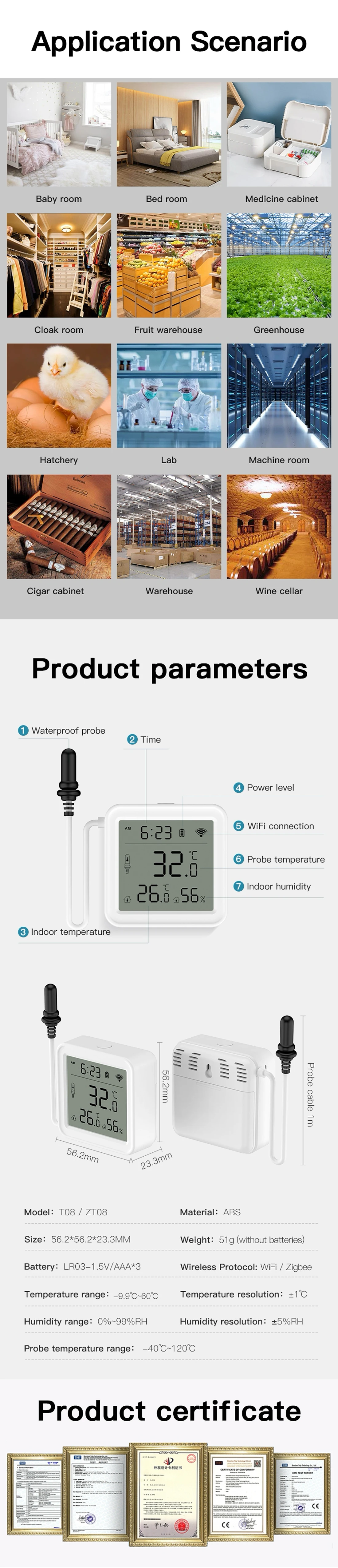 Tuya WiFi Zigbee medidor de temperatura y humedad con Sensor de sonda externa termómetro de pantalla LCD Digital para congelador de peceras