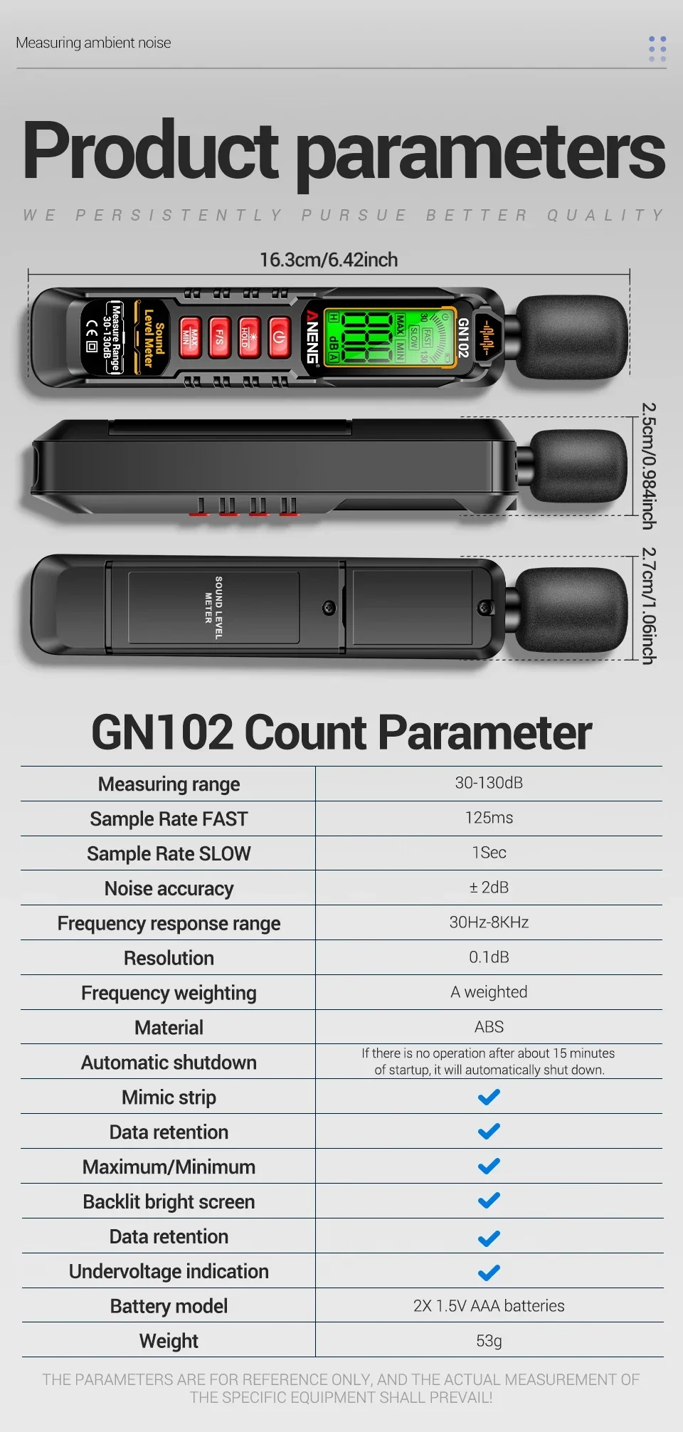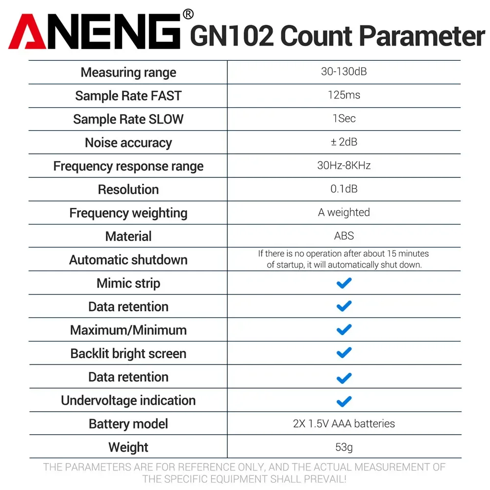 Comprar Medidor de nivel de sonido Digital ANENG GN102 medidor de nivel de Audio 30-130dB ruido ambiental a prueba de viento medidor de decibelios prueba de ruido portátil