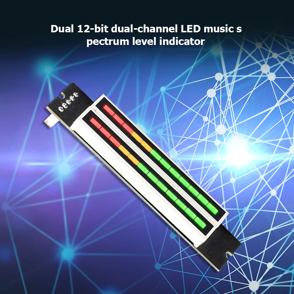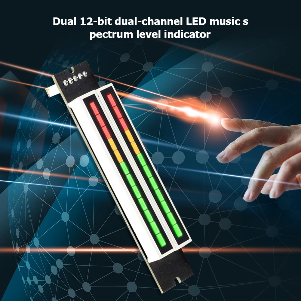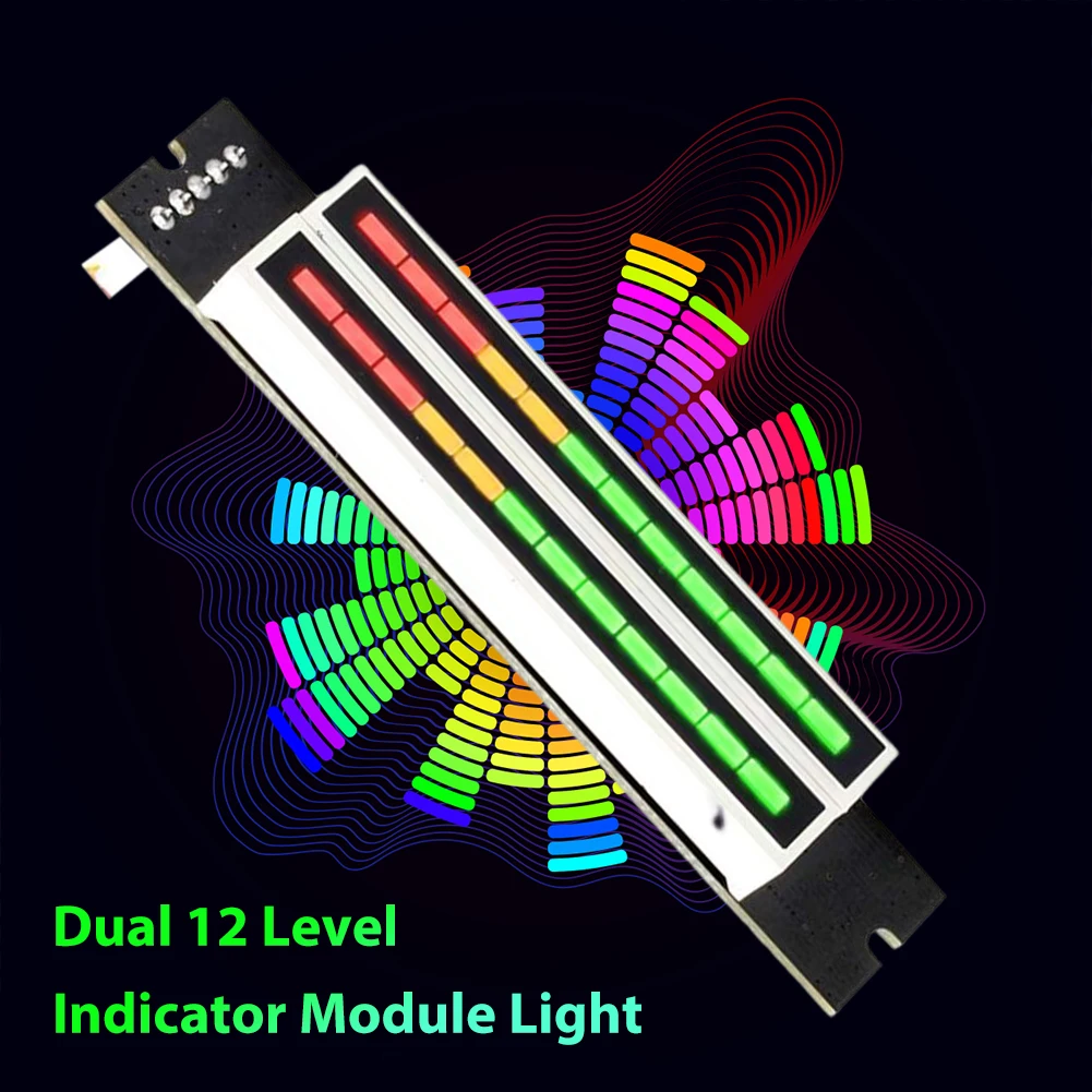 Característica:1. LED tricolor de 12 segmentos:La tira de luces LED incluye 12 segmentos en tres colores (verde, naranja y rojo) para proporcionar una visualización vívida del espectro musical.