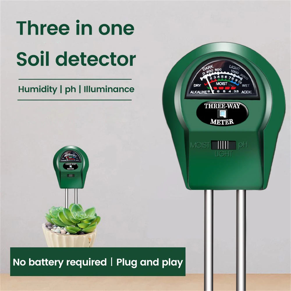 Medidor de PH de humedad y agua del suelo 3 en 1, ácido, humedad, luz solar, prueba de PH