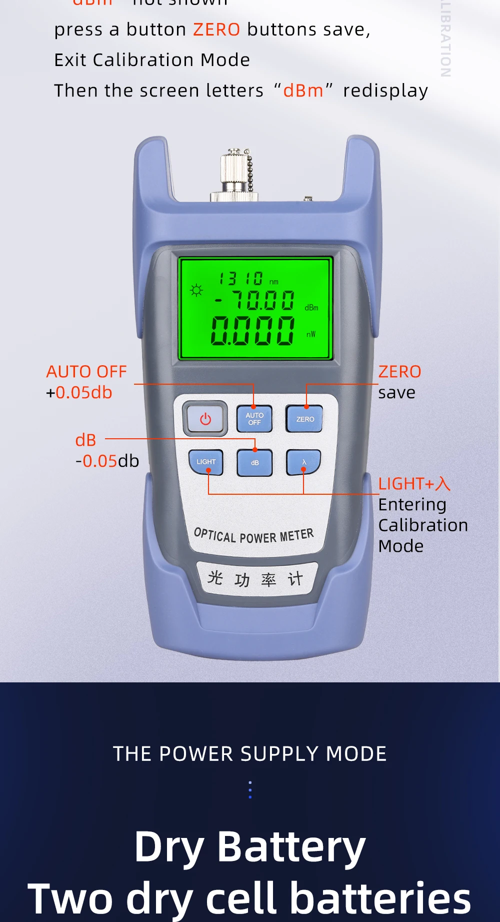 3. Autocalibración de bricolaje: presione simultáneamente los botones入 + LlGHT, ingresando al modo de calibración", dBm" no se muestra