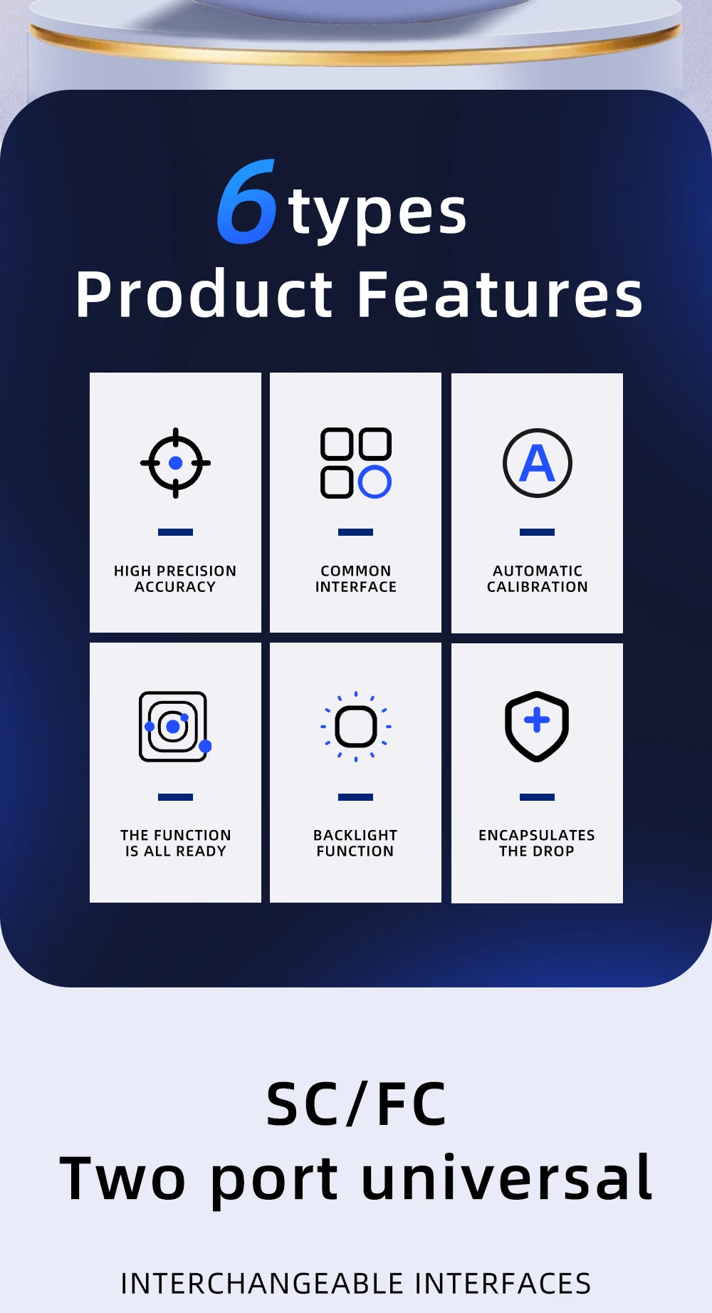 1.6 tipos Características del producto: ALTA PRECISIÓN; INTERFAZ COMÓMON; CALIBRACIÓN AUTOMÁTICA; LA FUNCIÓN ES TODA LISTA; FUNCIÓN DE RETROILUMINACIÓN; ENAPSULIZA LA GOTA