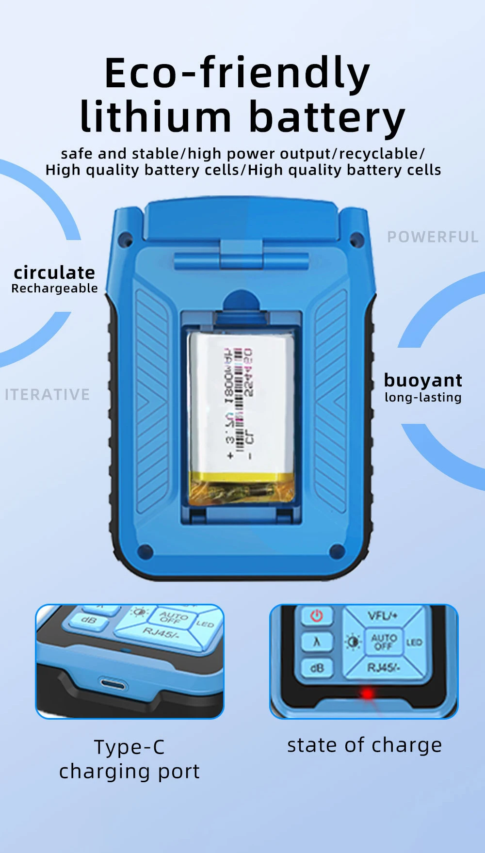 Batería recargable incorporada de 800 mAh, admite uso a largo plazo, adecuada para operaciones de campo